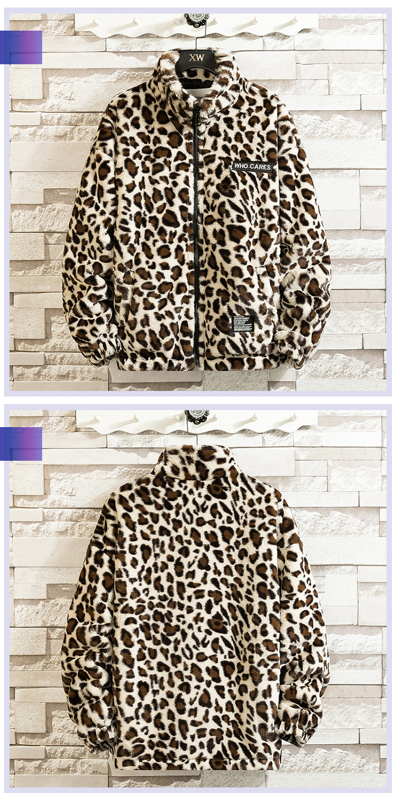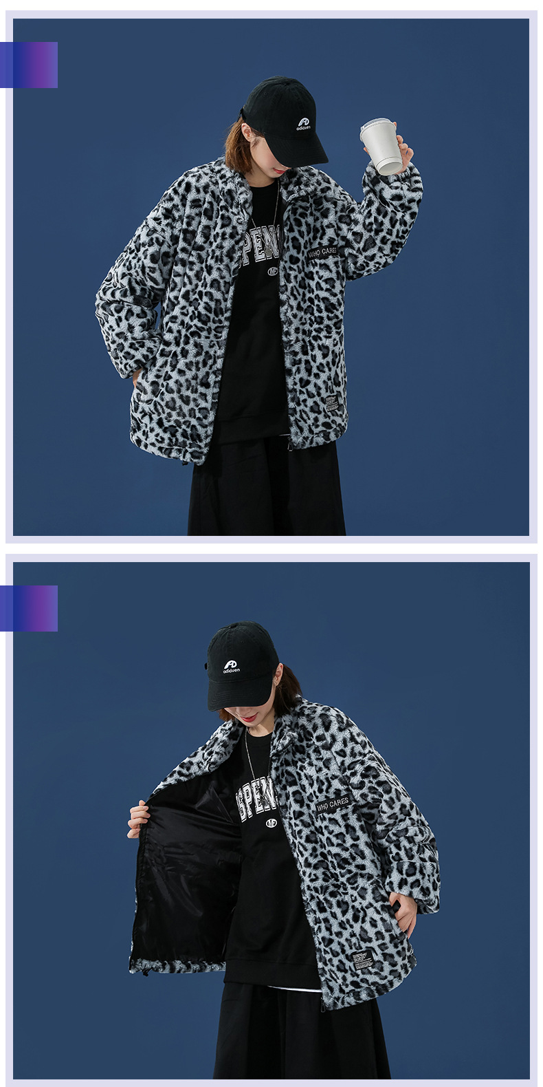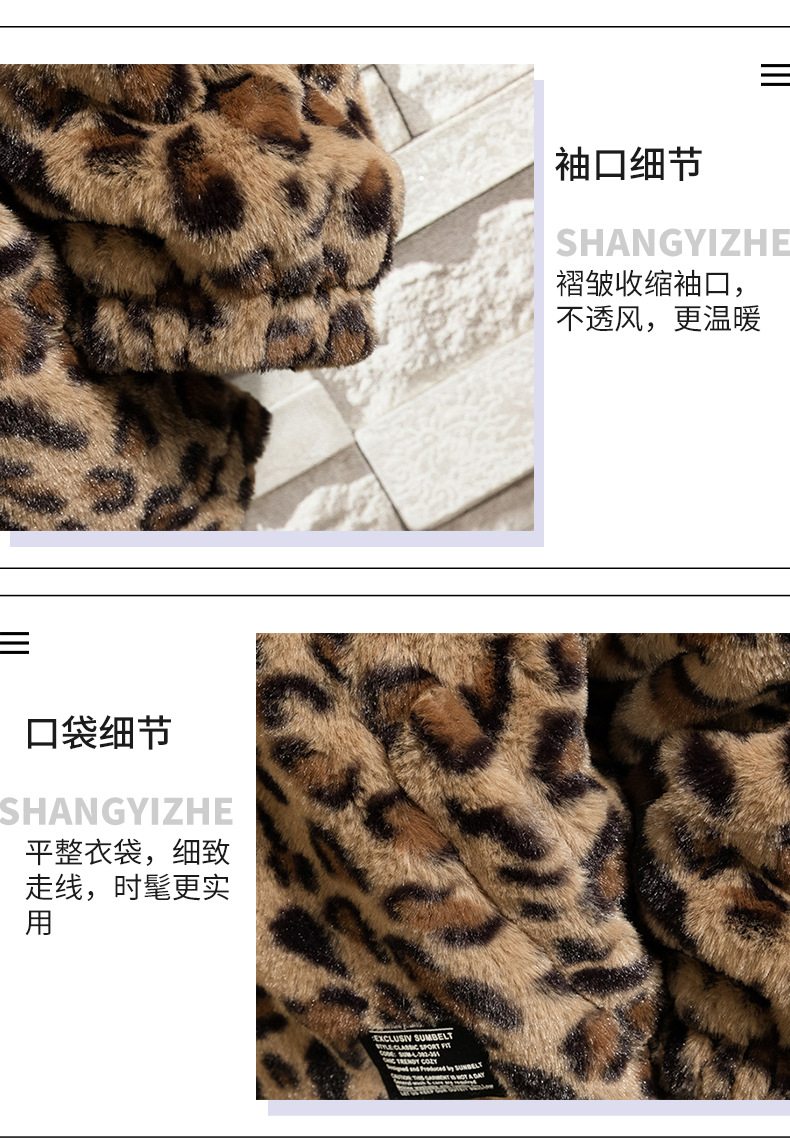 2021 가을과 겨울 새로운 남성 패션 브랜드 느슨한 짧은 플러시 레오파드 무늬 재킷 면 패딩 코트 면 패딩 재킷 커플 스탠드 칼라 코트