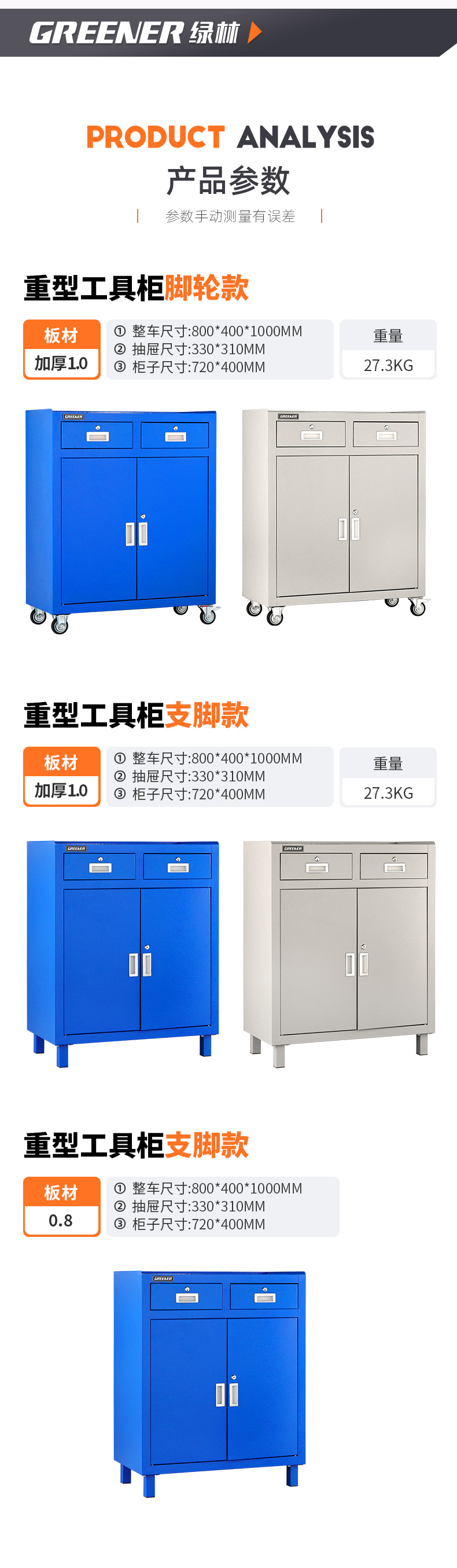 • 플래그십 두꺼운 블루 더블 서랍 도구 캐비닛 [발]