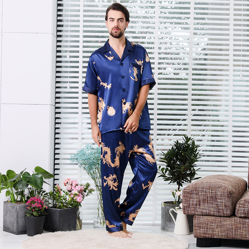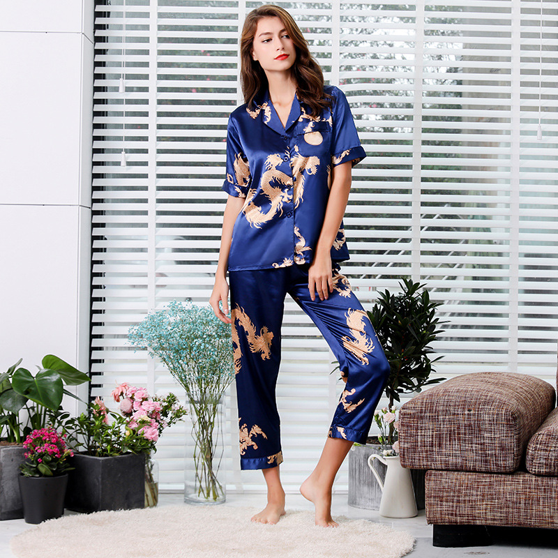 여름 커플 실크 잠옷 여성용 얇은 여름 남성용 세트 반팔 실크 홈웨어 남성용 인조 실크스토어 가기
