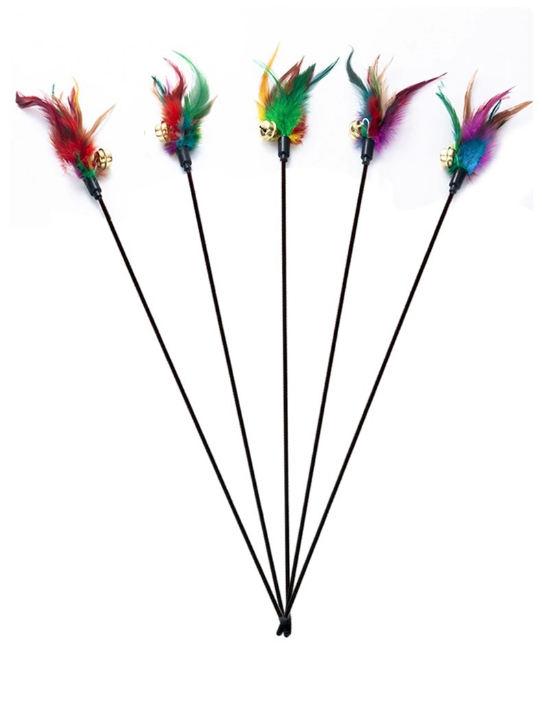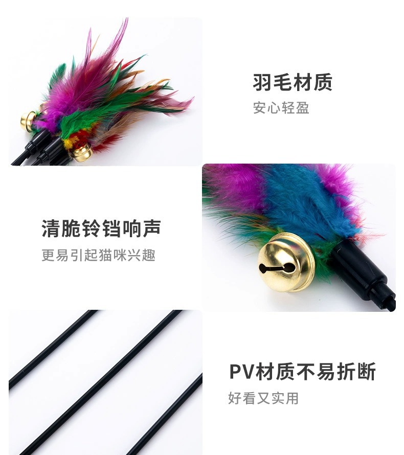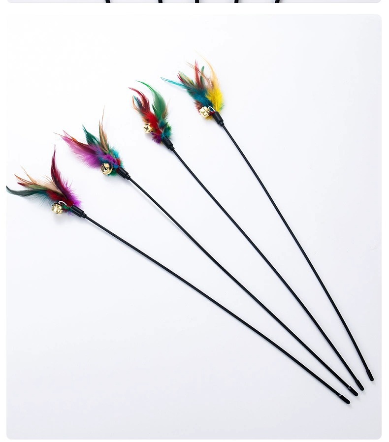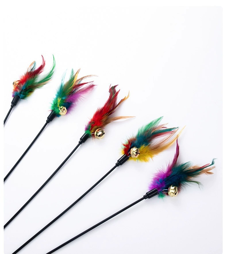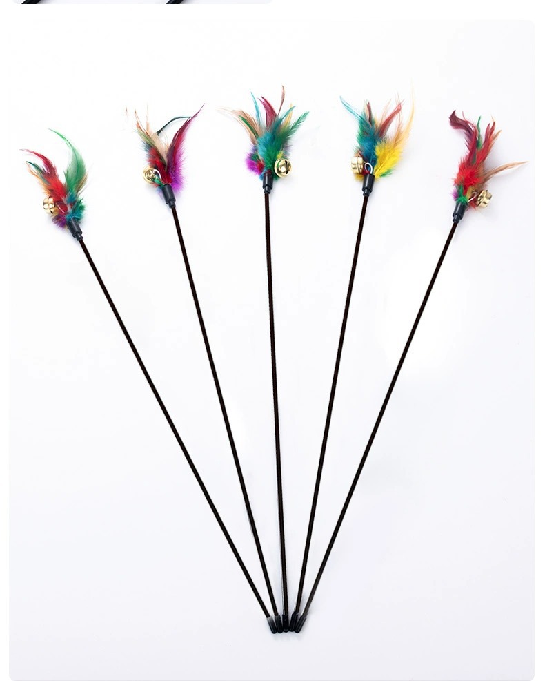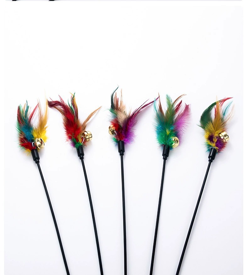 지루함을 덜어주는 고양이 장난감 긴 막대 다채로운 깃털 벨 애완 동물 고양이 스틱 대화 형 셀프 하이 고양이 스틱 도매