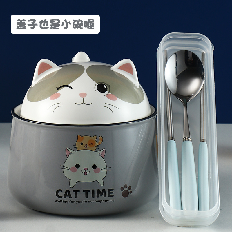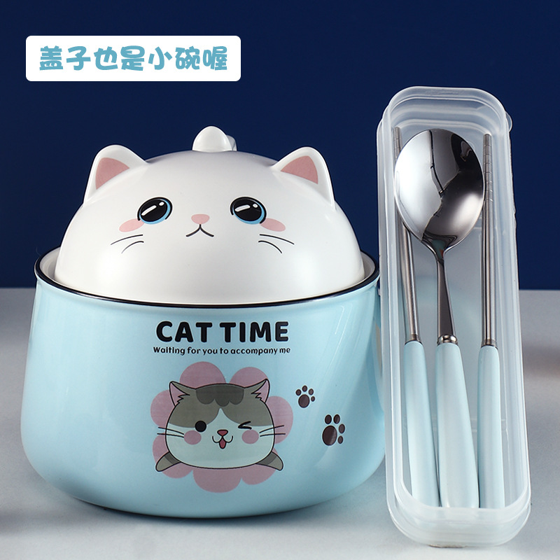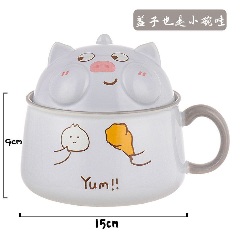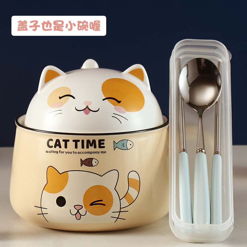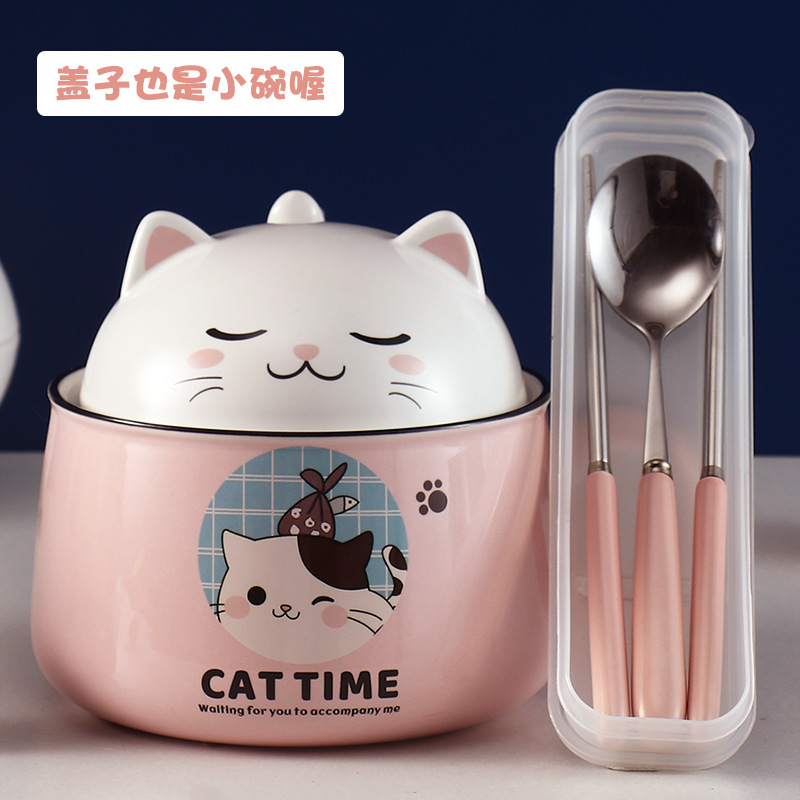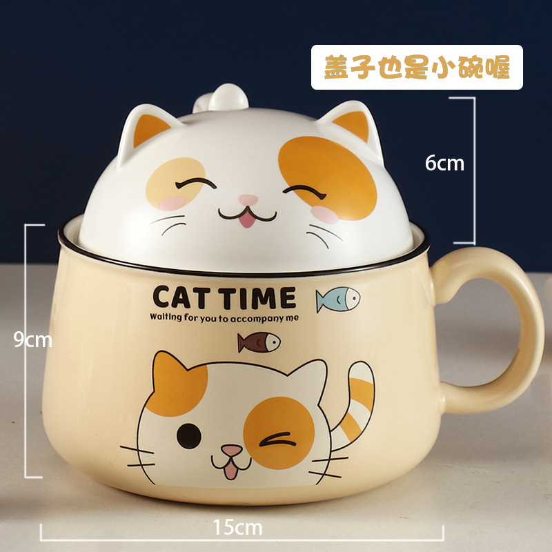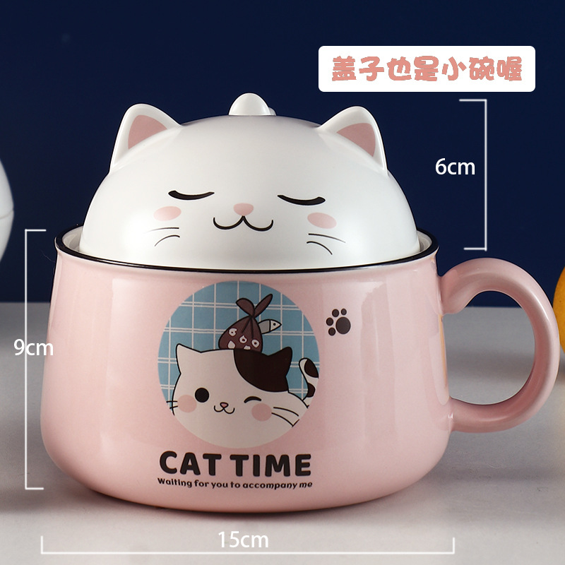 귀여운 회사원 일본 대형 여학생 기숙사 만화 라면 그릇 전자 레인지 손잡이 고양이 도자기 그릇스토어 가기