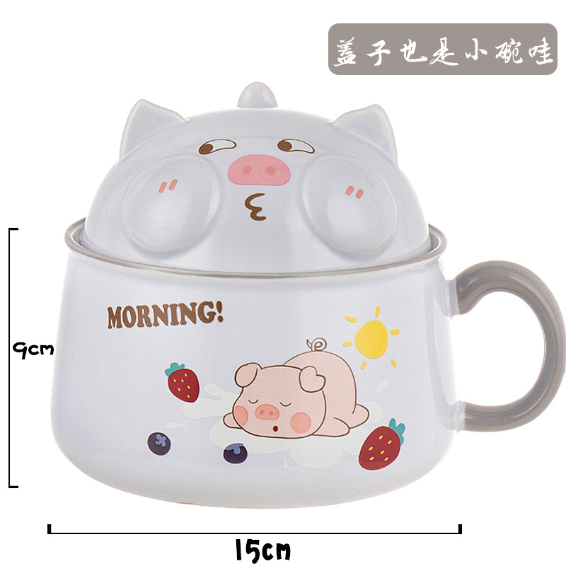 귀여운 회사원 일본 대형 여학생 기숙사 만화 라면 그릇 전자 레인지 손잡이 고양이 도자기 그릇