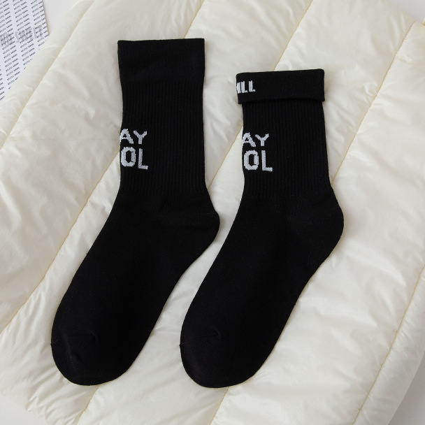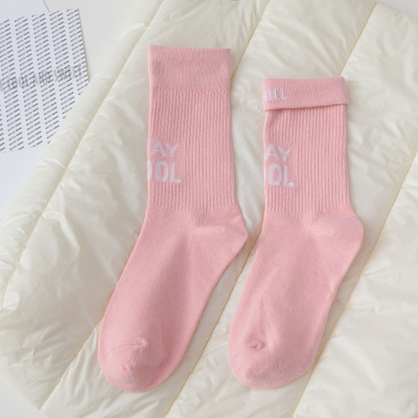 간단한 편지 면 양말 스포츠 캐주얼 양말 숙녀 패션 송아지 양말 조수