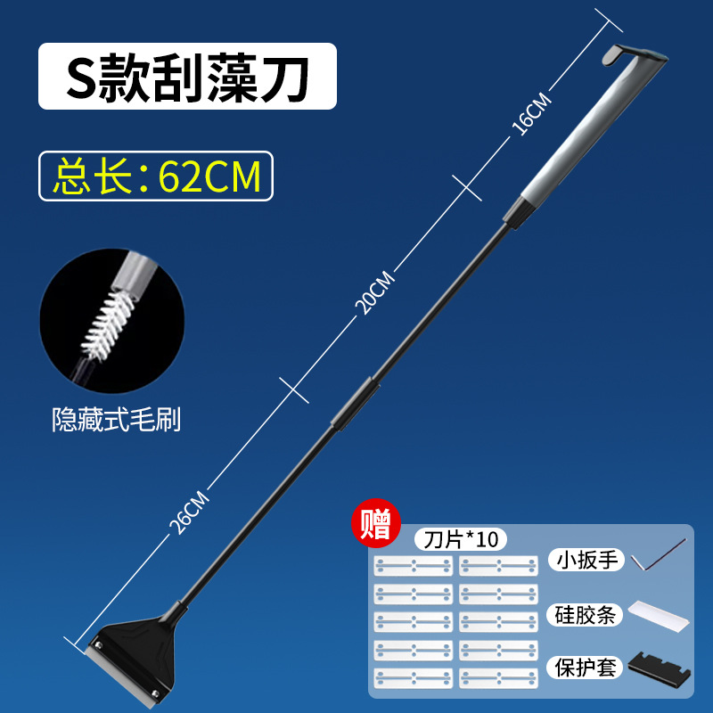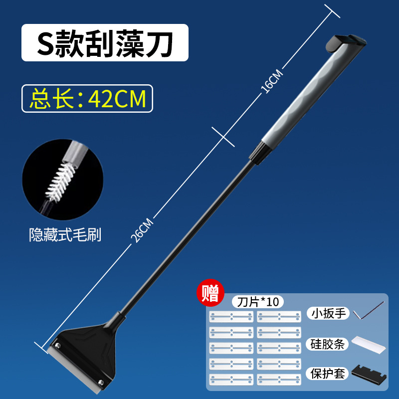 S款为三合一刮藻刀,硅胶刮刀,刀片刮刀,清洁毛刷融为一体设计。专利产品,仿冒必究。