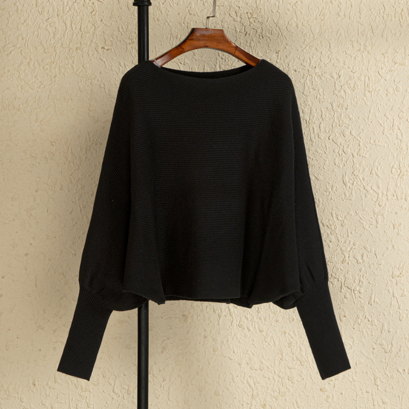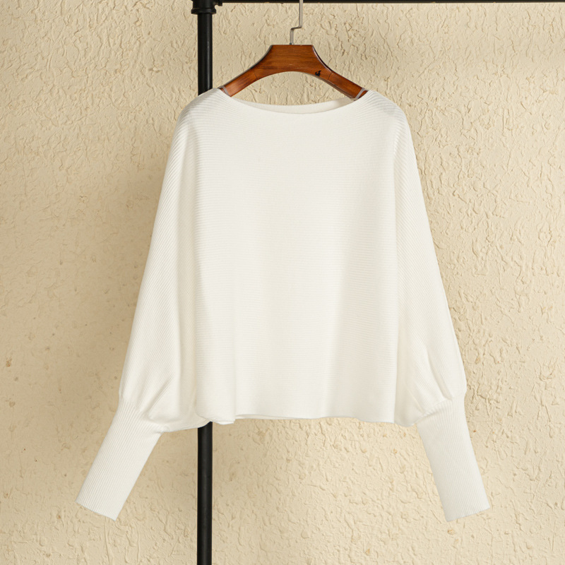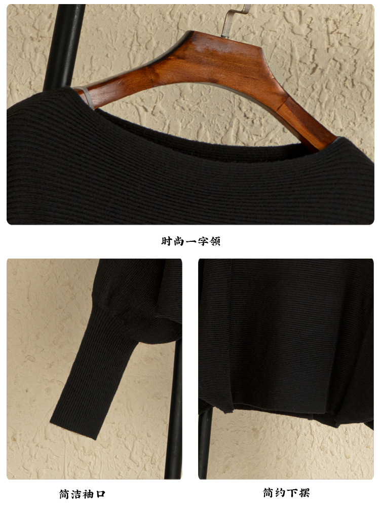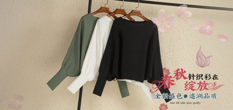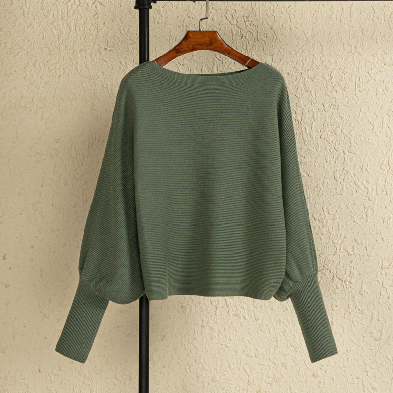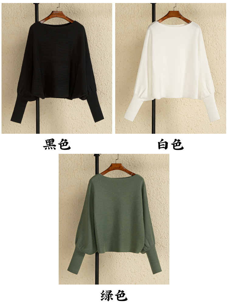 여자 크루 넥 바지 셔츠 가을과 겨울 새로운 돌만 슬리브 스웨터 느슨한 내부 라이딩 오프 숄더 니트 탑