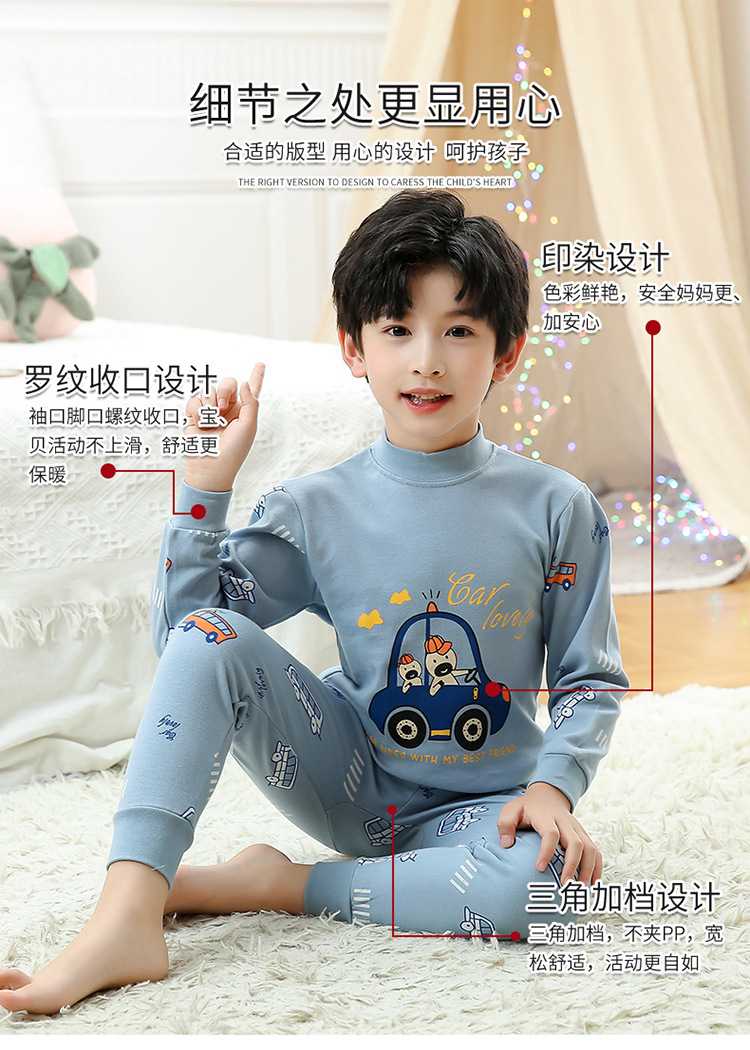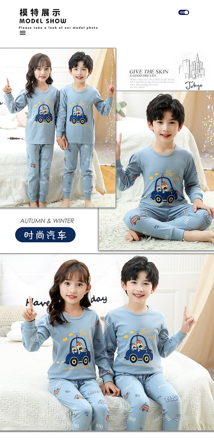 한국식 면 가을과 겨울 어린이 가정복 2 피스 따뜻한 통기성 속옷 세트 자동차 인쇄 가을 옷 소년과 소녀스토어 가기