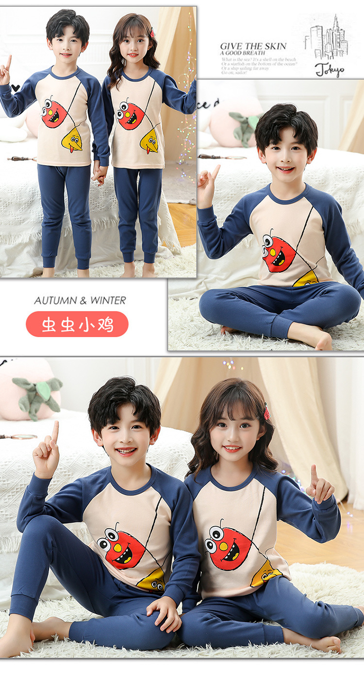 한국식 면 가을과 겨울 어린이 가정복 2 피스 따뜻한 통기성 속옷 세트 자동차 인쇄 가을 옷 소년과 소녀