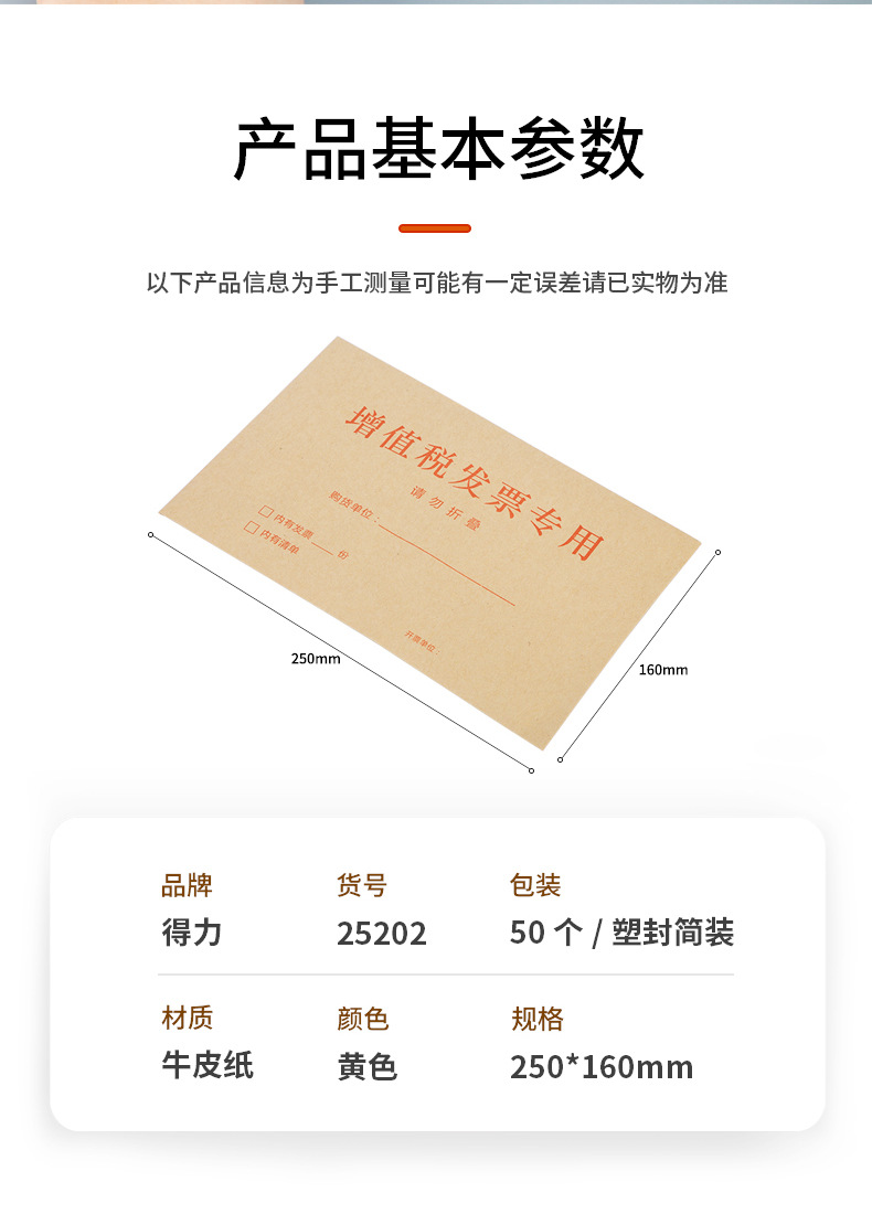 델리 25202 소가죽 VAT 송장 봉투 송장 가방 (50/팩) VAT 송장 크래프트 종이 스티커