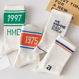 新品中筒袜子女 ins潮街头数字1997运动白色字母塑形棉袜一件代发