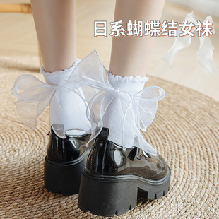 日系蝴蝶结洛丽塔女袜猛男后跟带蝴蝶结仙女可爱花边袜子女中筒