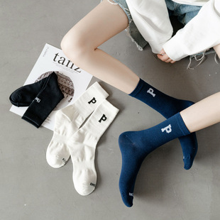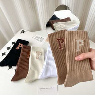 袜子女秋冬季新品ins潮女士P字母个性穿搭刺绣款情侣袜潮牌中筒袜