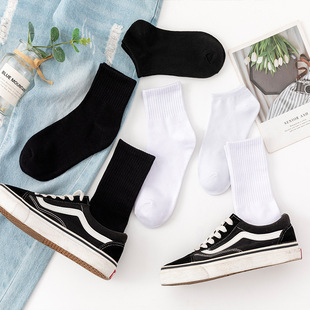 袜子男士中筒袜子秋冬长袜日系 ins潮运动袜情侣黑白纯色袜子批发
