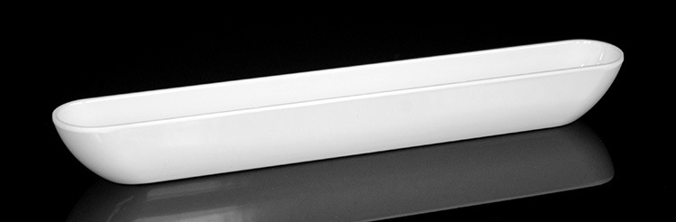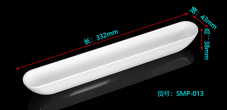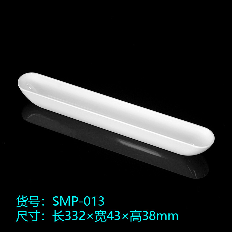 13 인치 긴 접시 도자기 미판 A5 멜라민 식기 보트 모양 새우 공 미트볼 접시 상자 도매 로고 인쇄 라벨