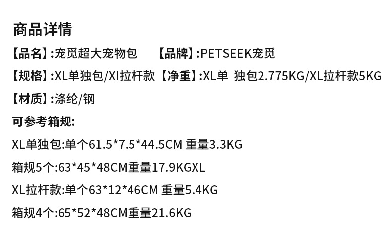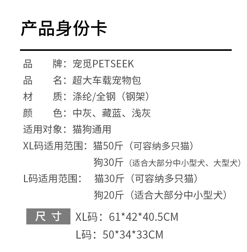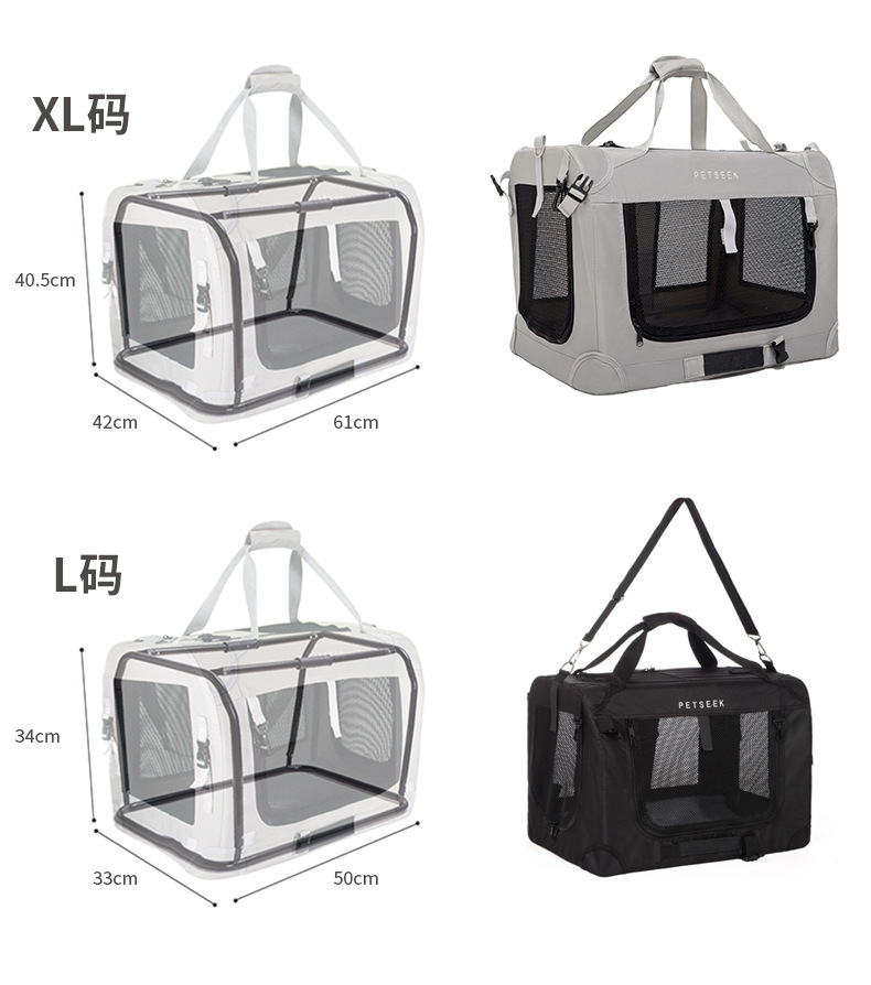 • XL 사이즈(61*42*40.5cm)는 고양이 25kg마리/개 15kg마리에게 적합합니다.