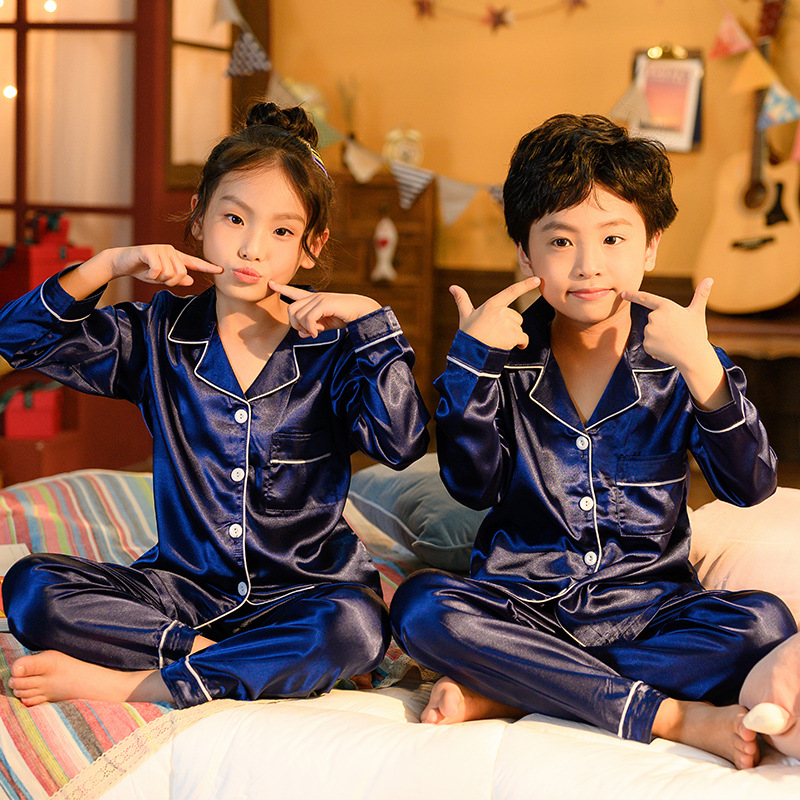 어린이 잠옷 소년 봄 가을 실크 얇은 가정 옷 여아 어린이 아기 부모-어린이 긴팔 세트스토어 가기