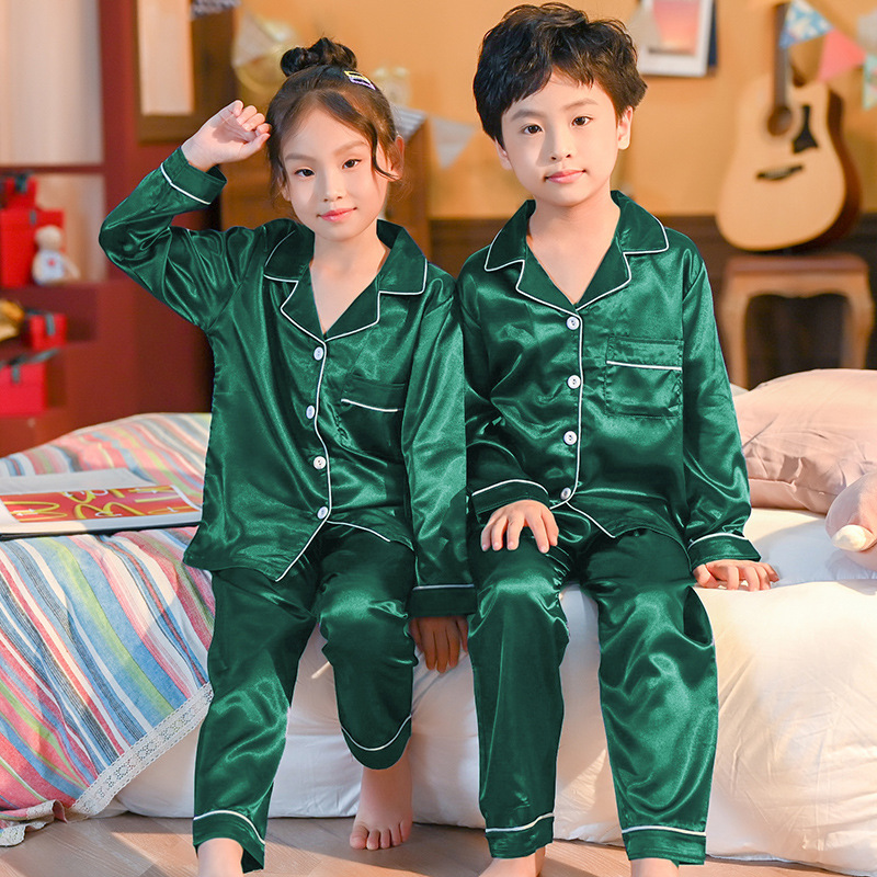 어린이 잠옷 소년 봄 가을 실크 얇은 가정 옷 여아 어린이 아기 부모-어린이 긴팔 세트