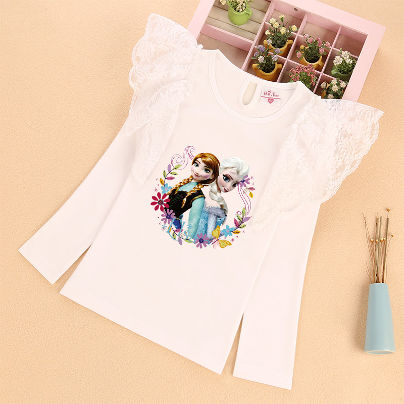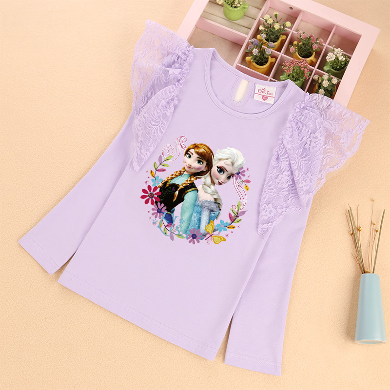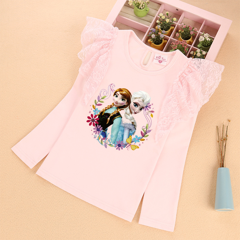 새로운 소녀 레이스 소매 긴 소매 티셔츠 공주 비행 소매 재킷 가을 얇은 라운드 넥 티셔츠 머리카락의 세대스토어 가기