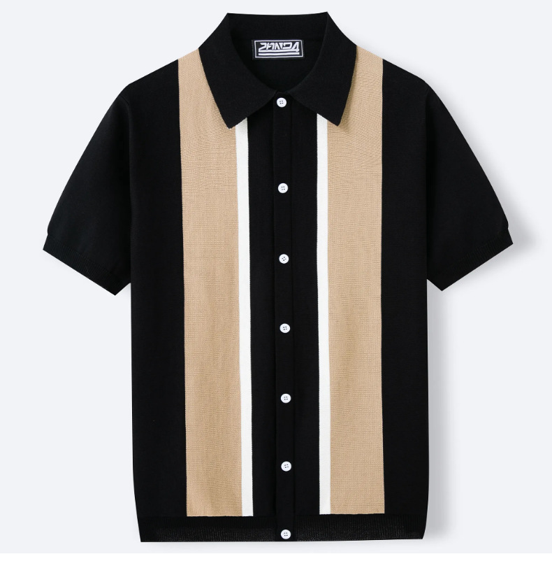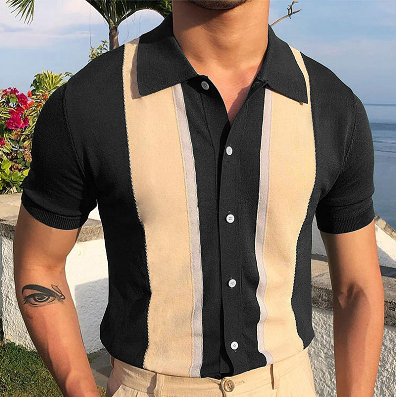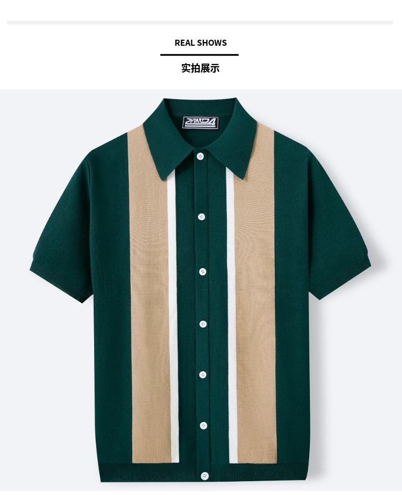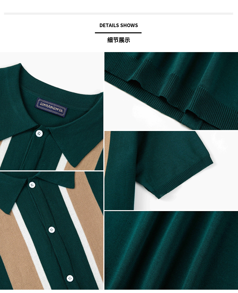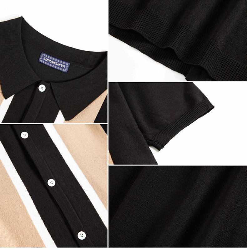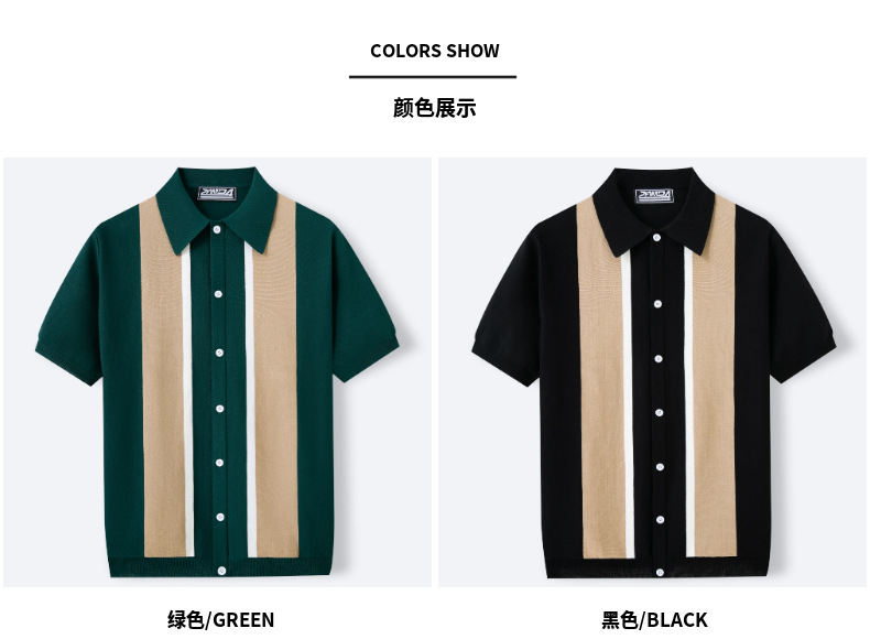 유럽과 미국 대외 무역 새로운 남성용 옷깃 대비 티셔츠 싱글 브레스트 가디건 니트 반팔 폴로 셔츠 SY0094