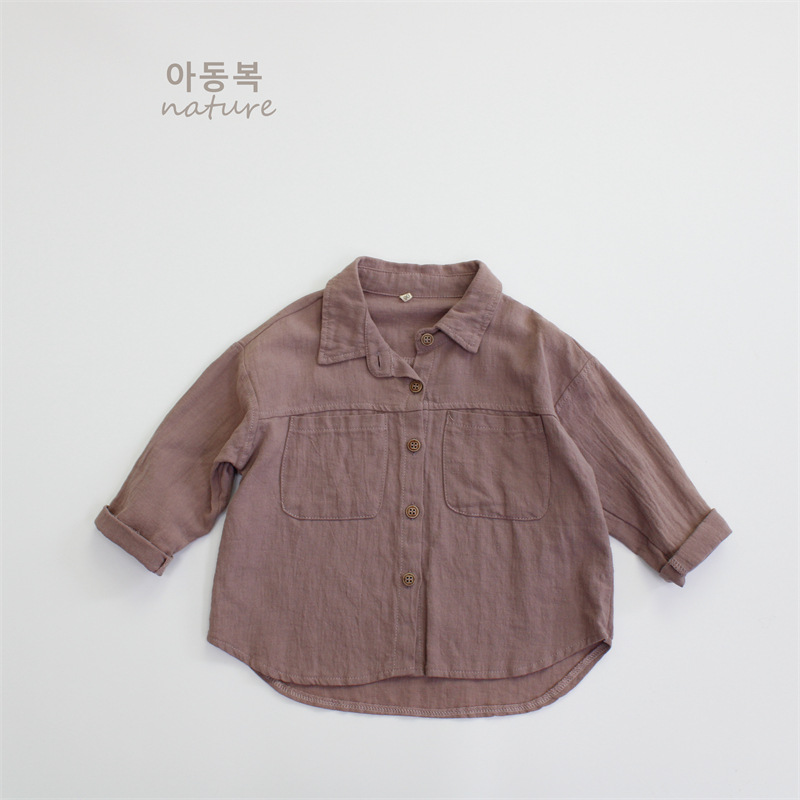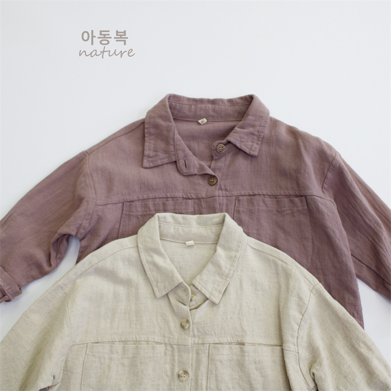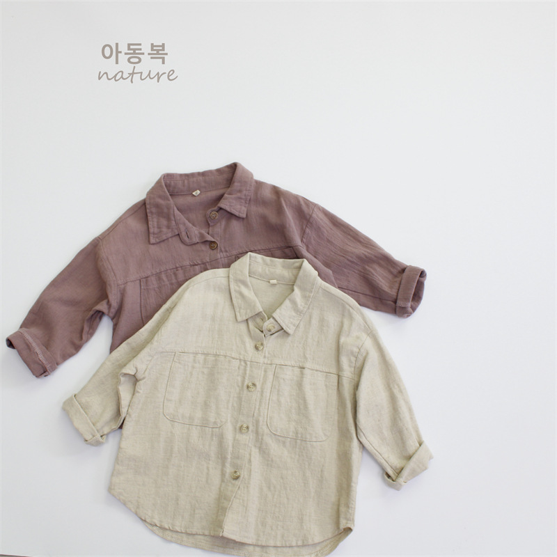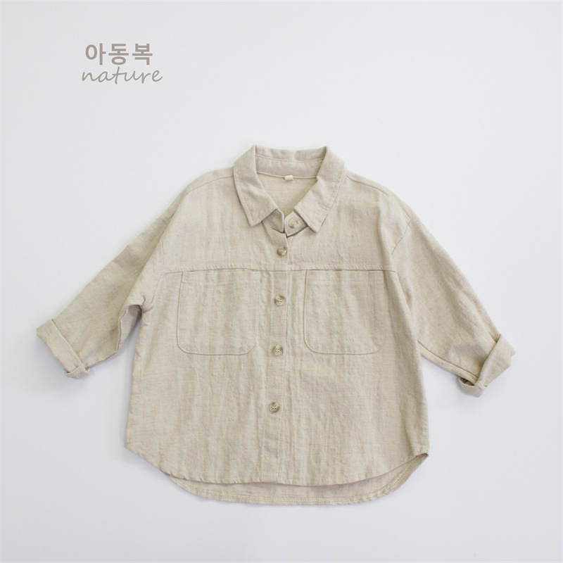 봄 아동 셔츠 코튼과 린넨 솔리드 컬러 소년 셔츠 한국 스타일 캐주얼 소녀 탑 긴팔 클래스 A 드롭 배송