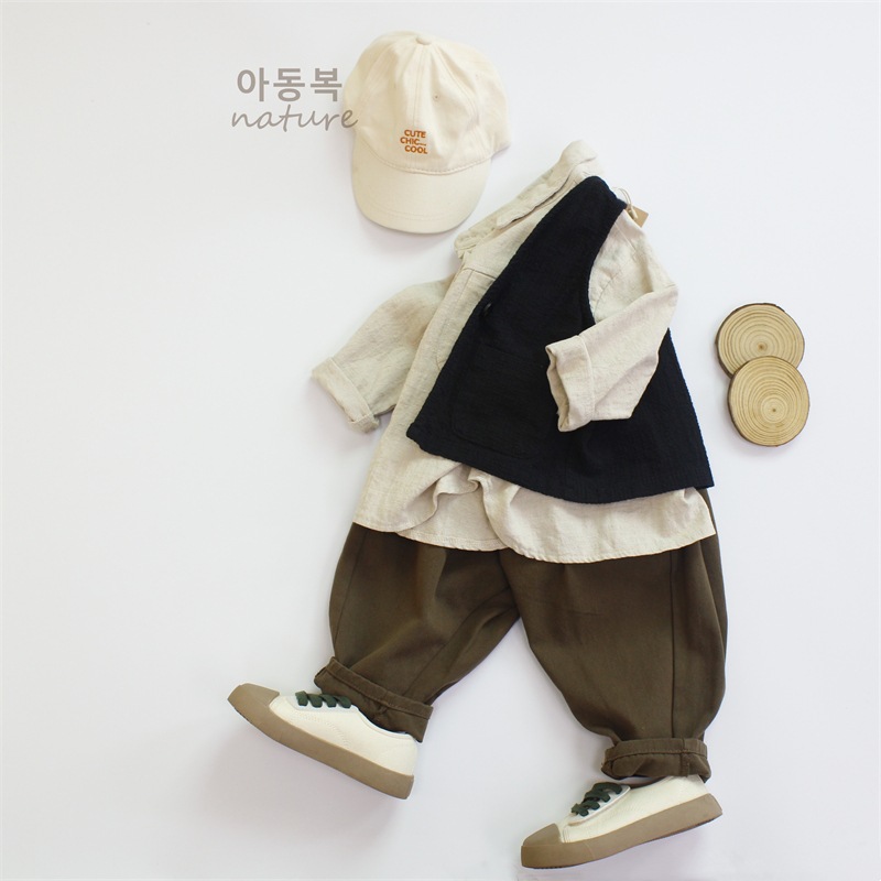 봄 아동 셔츠 코튼과 린넨 솔리드 컬러 소년 셔츠 한국 스타일 캐주얼 소녀 탑 긴팔 클래스 A 드롭 배송스토어 가기