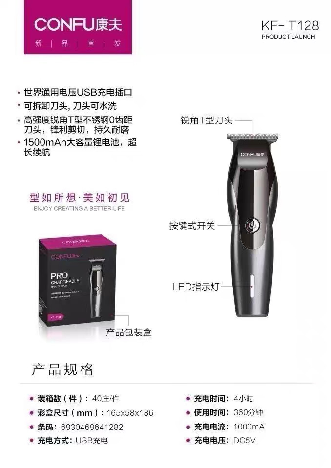 캉푸 T128 이발기, 미용실 전용 이발기, 헤어 스타일링 이발기, 성인용 충전식 전기 이발기