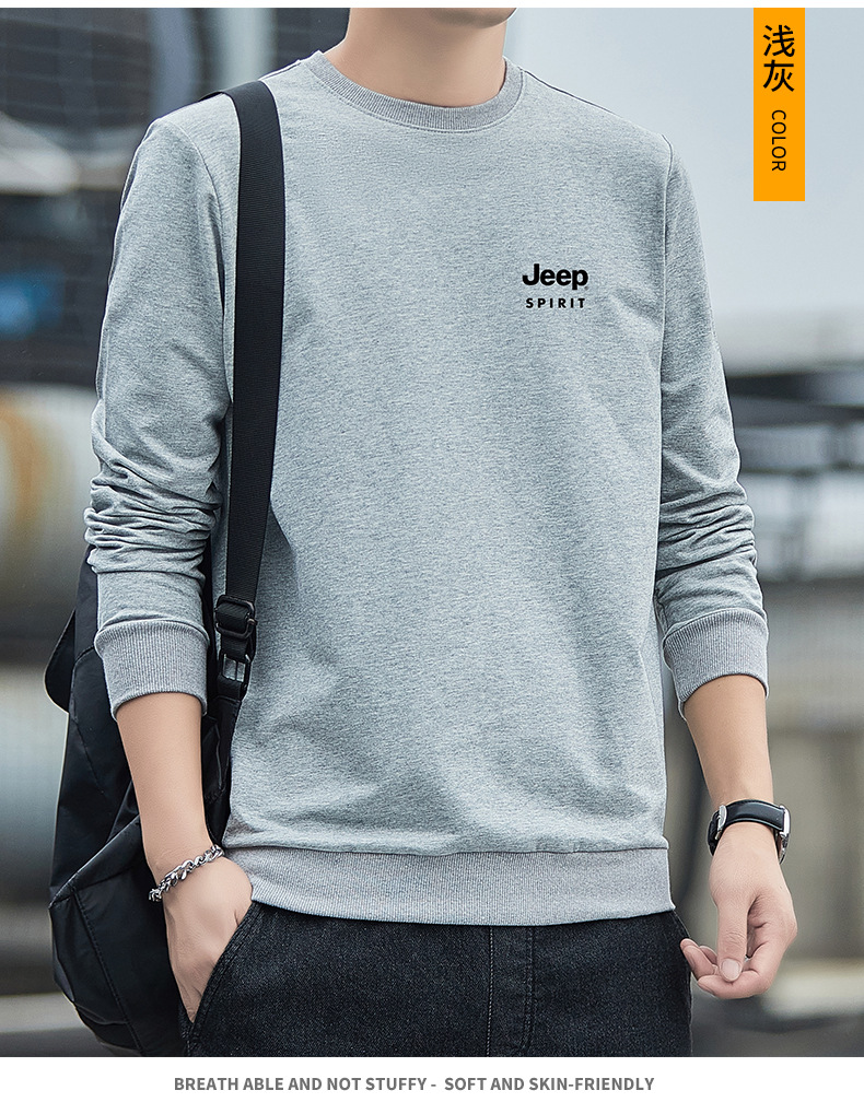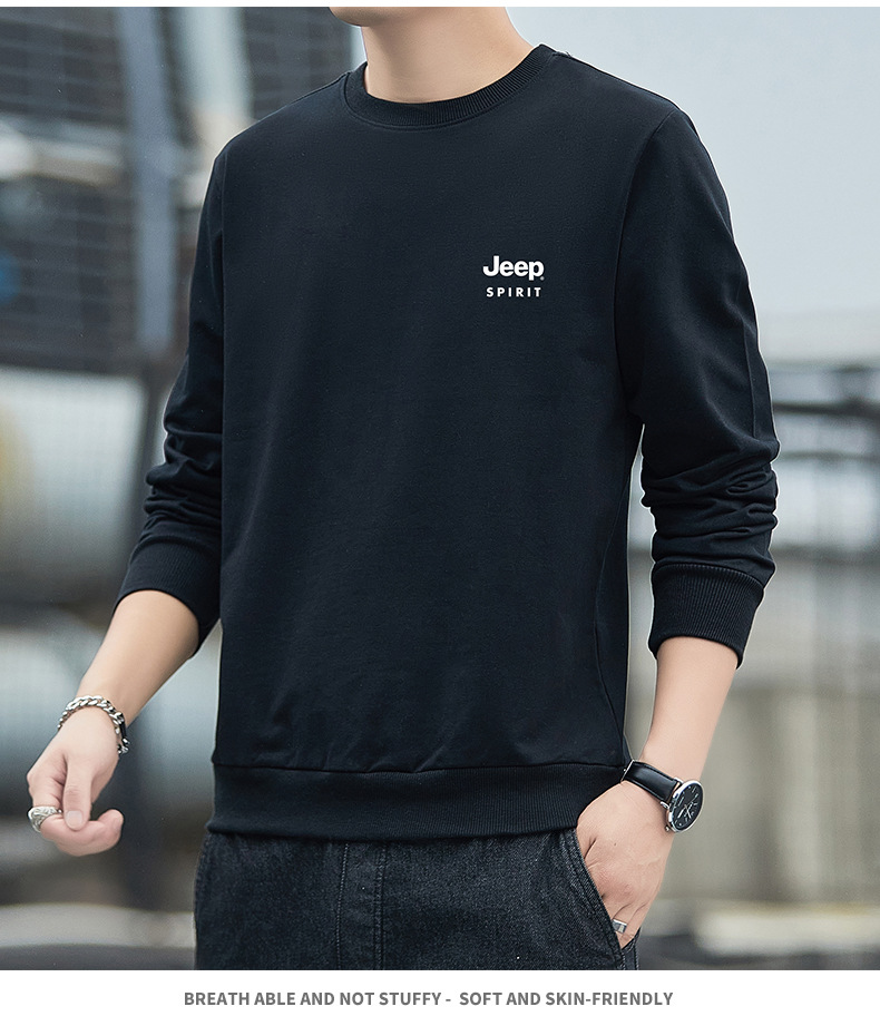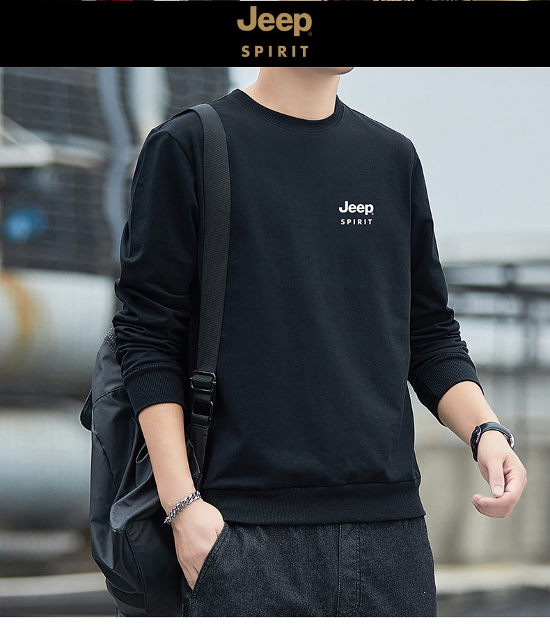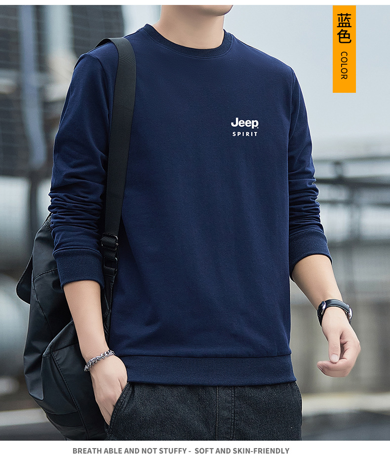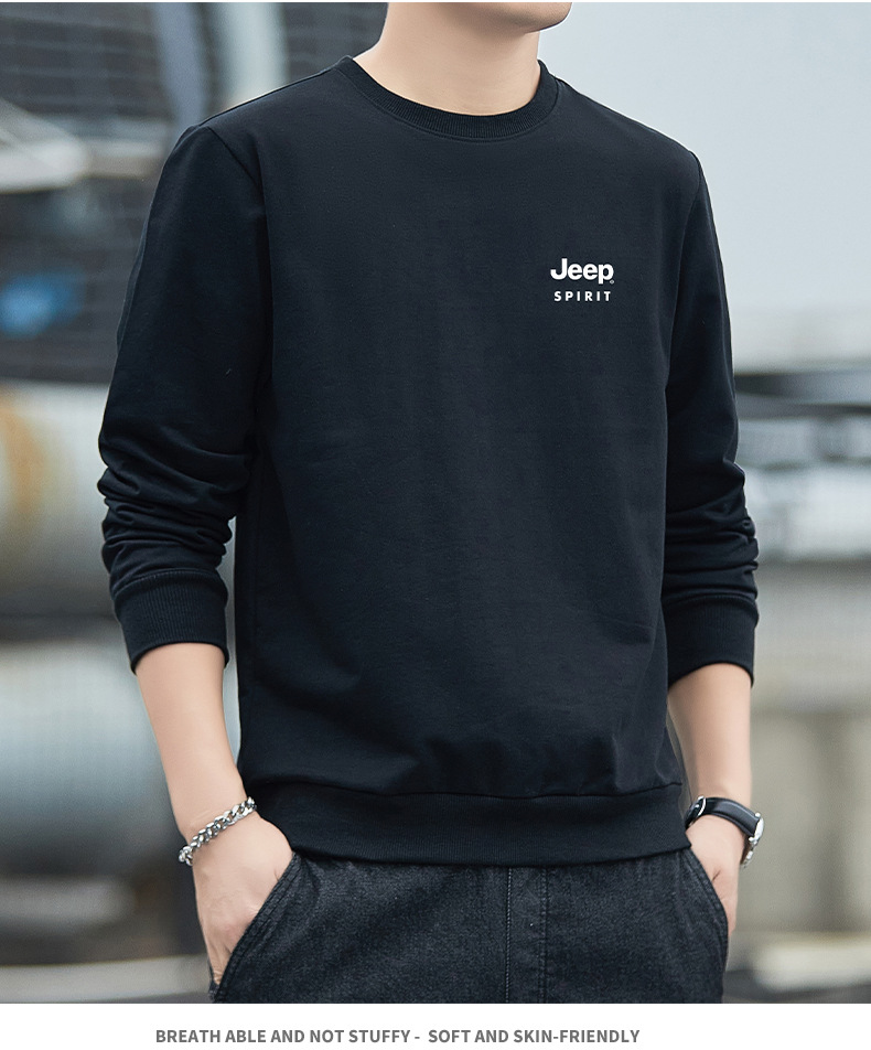 인기 JEEP SPIRIT 봄, 가을 라운드 넥 스웨트 셔츠 남성 캐주얼 루즈 대형 긴팔 티셔츠 탑 6501 새로운 스타일스토어 가기