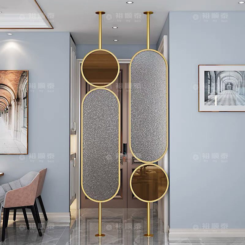 라이트 럭셔리 회전 스테인레스 스틸 Changhong 유리 스크린 현대 금속 칸막이 벽 거실 침실 블록 인터넷 연예인 입구