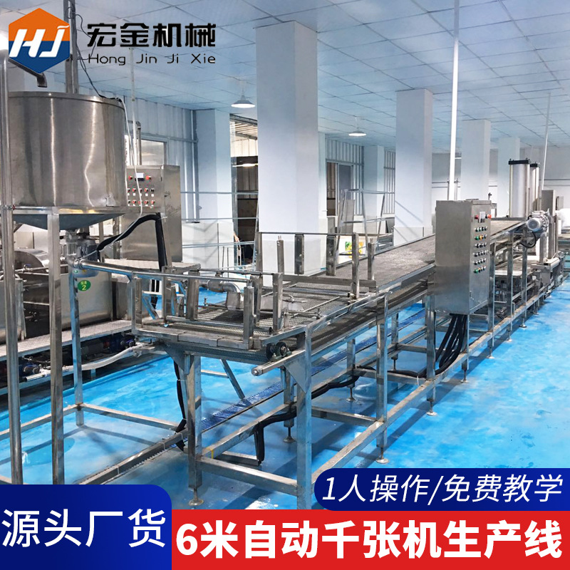 自动千张豆皮机波片均匀产量高,波脑自动搅脑,定量上脑、成型自动下降、自动推盒压榨、压制设备采用微电脑控制器操作简单,压榨箱自动回箱轨道装置无需人工搬箱减少体力劳动,设备可配置千张摊凉机,摊凉机可加速千张风凉速度,可直接收取入库,无需人工再次凉皮,设备可根据客户厂房大小定制。