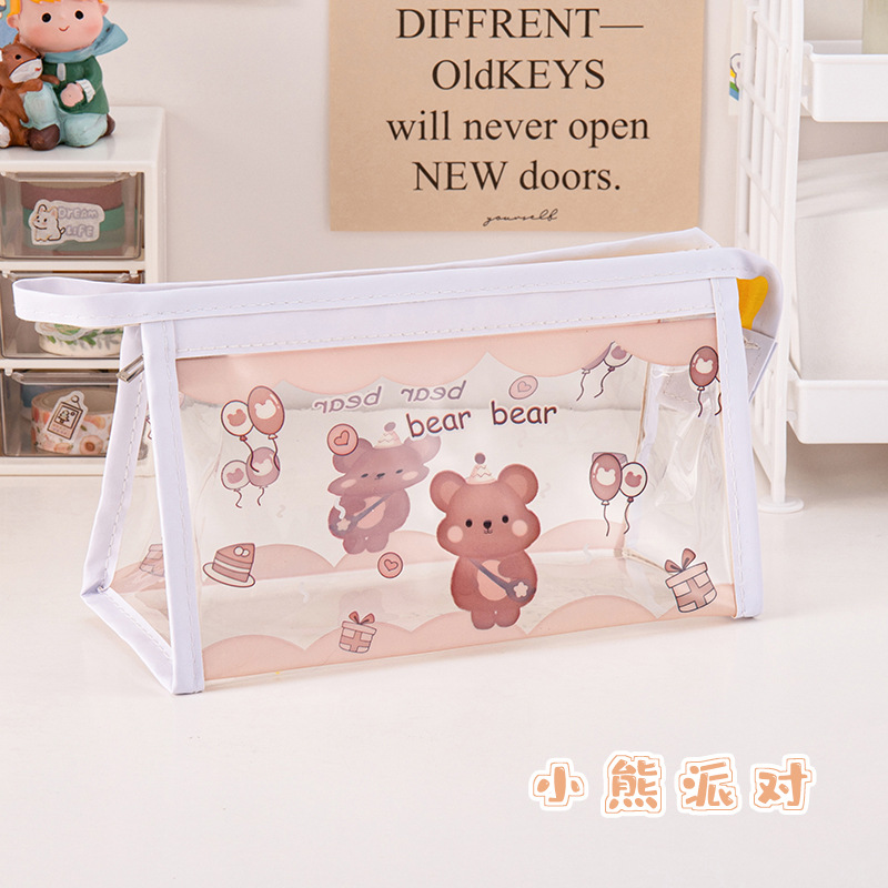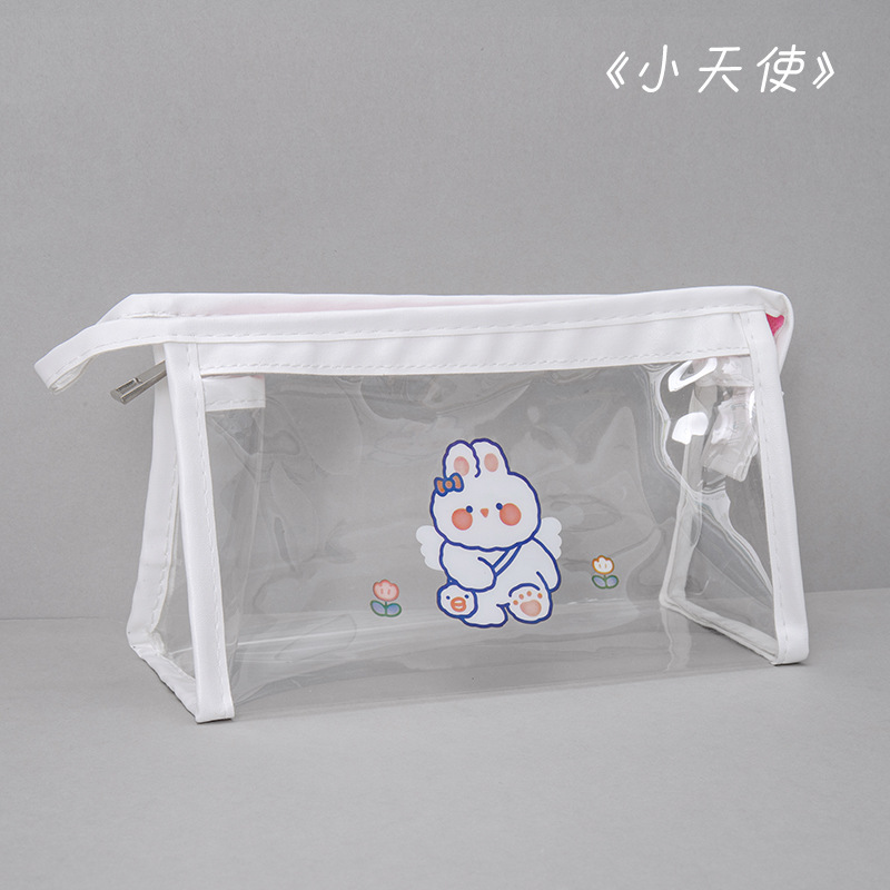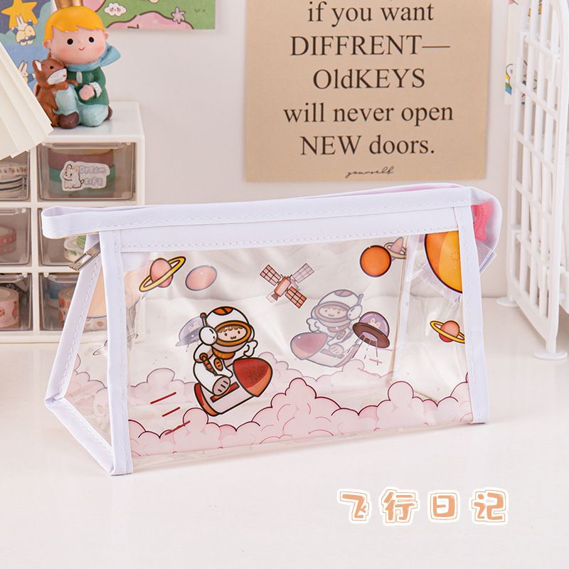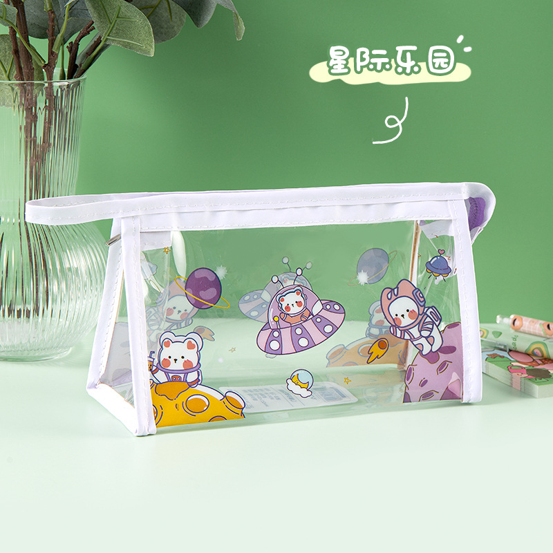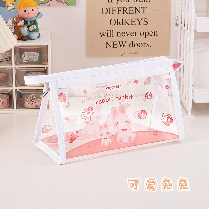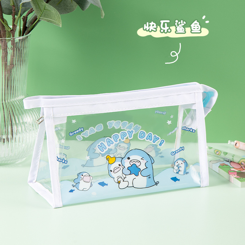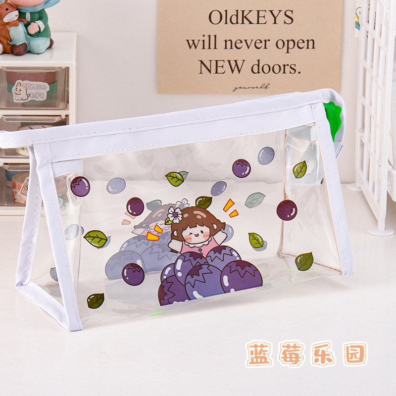 만화 대용량 투명 필통 학생 방수 문구 가방 삼각형 수납 가방 문구 도매 투명 방수