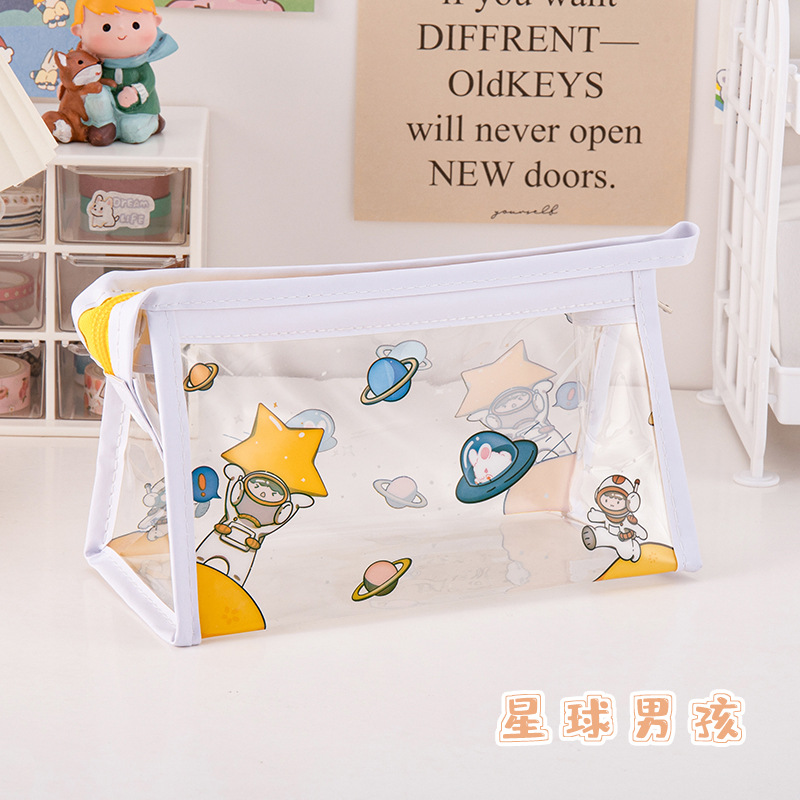 만화 대용량 투명 필통 학생 방수 문구 가방 삼각형 수납 가방 문구 도매 투명 방수스토어 가기