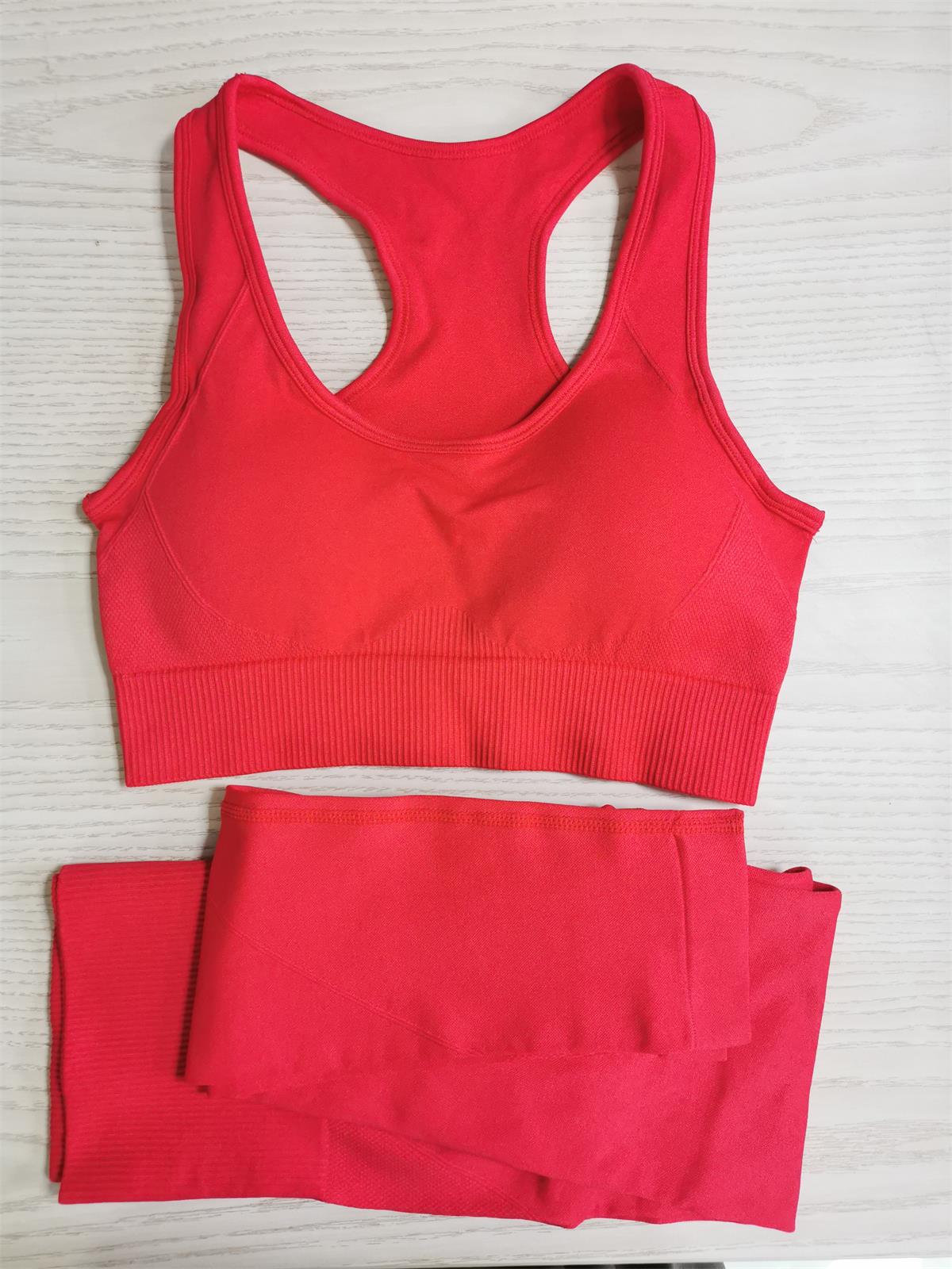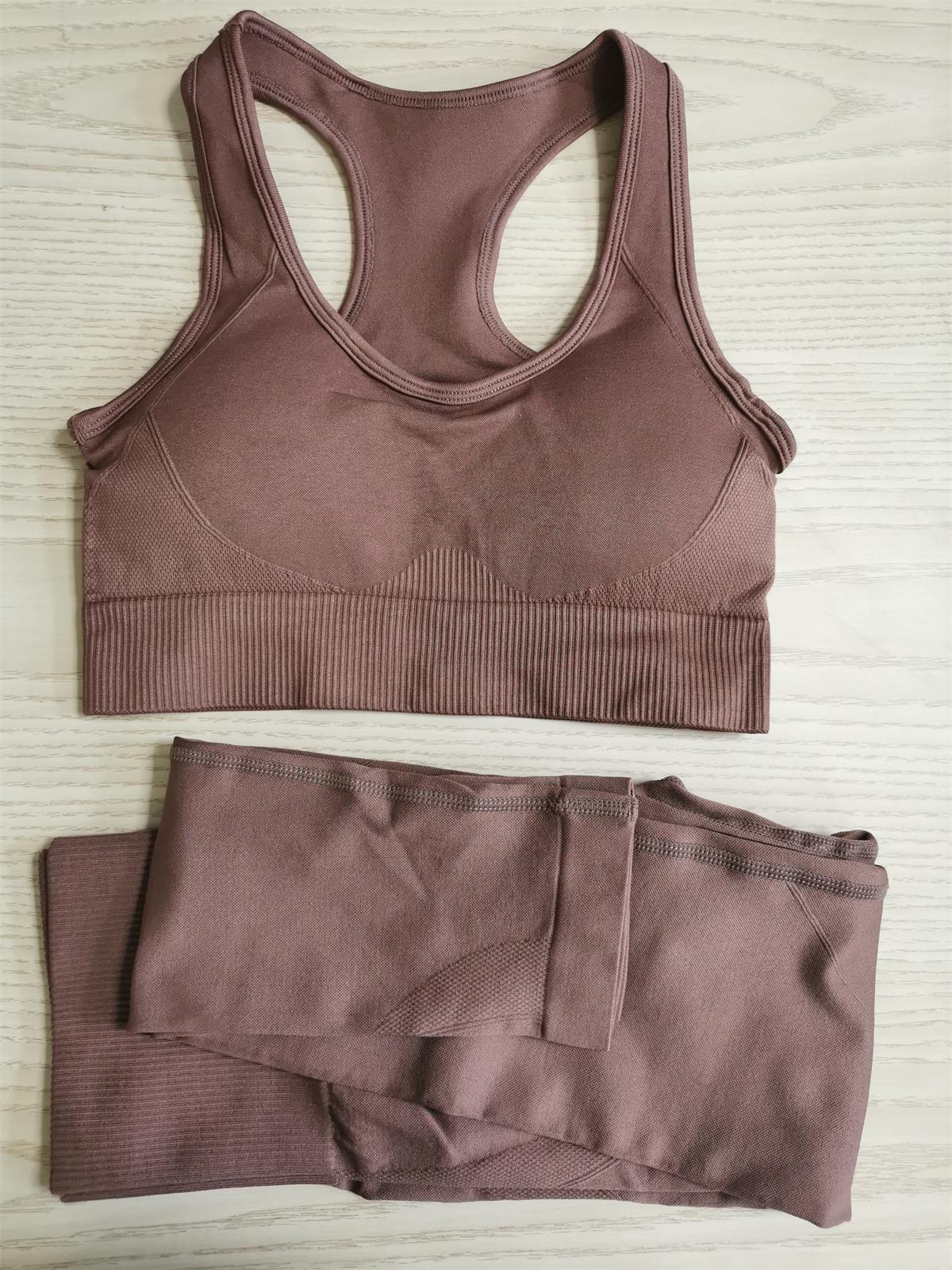 유럽과 미국 베스트 셀러 간단한 수분 흡수 및 땀 wicking의 전체 브로케이드 스포츠 세트 원활한 요가 의류 세트 부츠 피트니스 여성