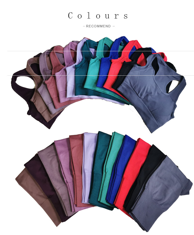 유럽과 미국 베스트 셀러 간단한 수분 흡수 및 땀 wicking의 전체 브로케이드 스포츠 세트 원활한 요가 의류 세트 부츠 피트니스 여성스토어 가기