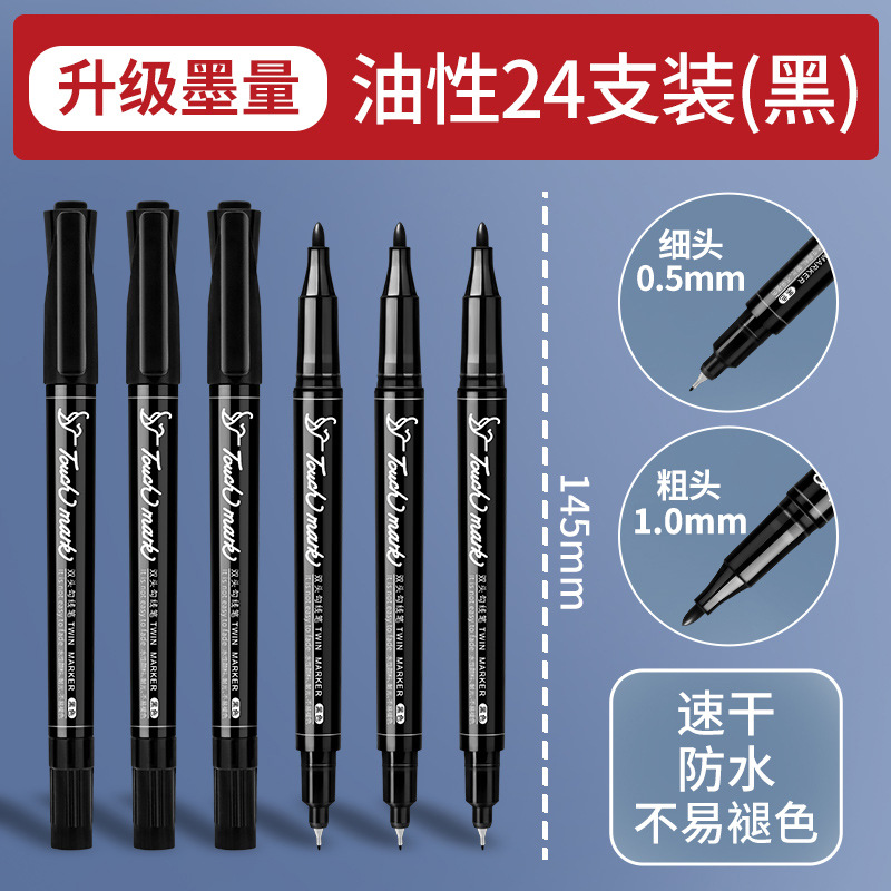 엄선된 마커 펜, 양면 유성 방수 초등학생용 그림 펜, 라인펜, 검정색 그림 마커 펜