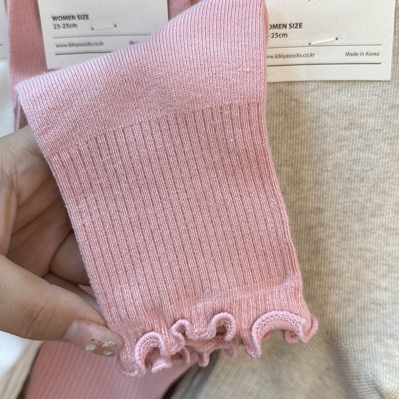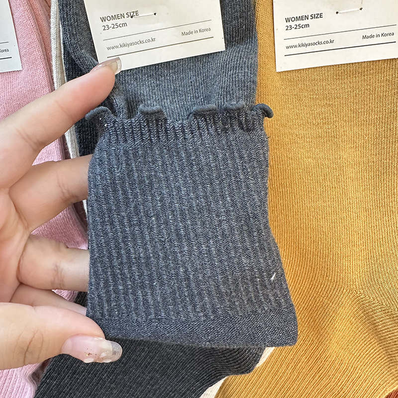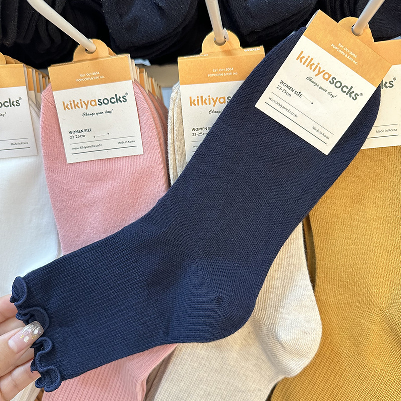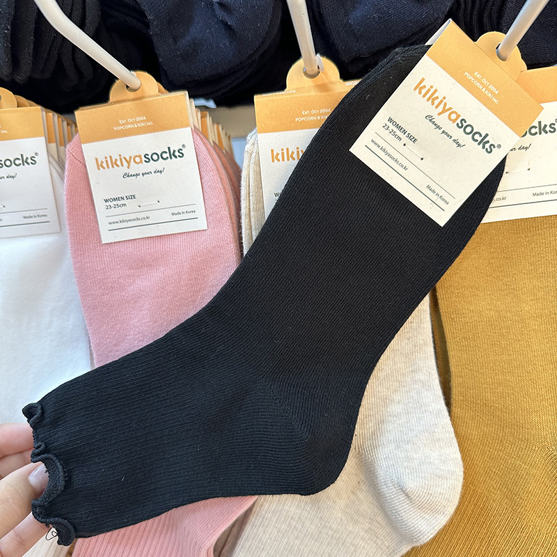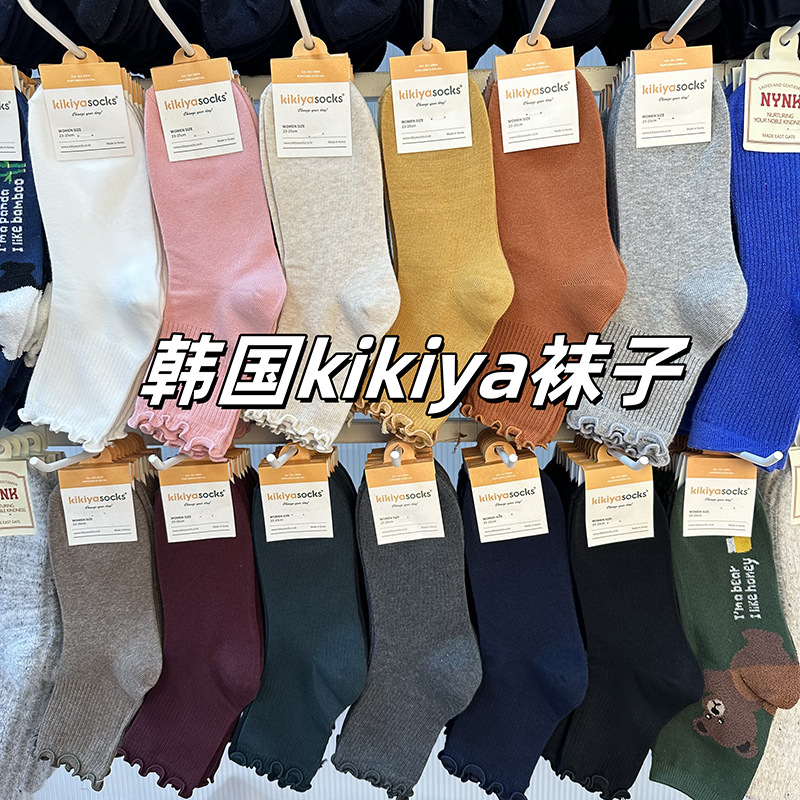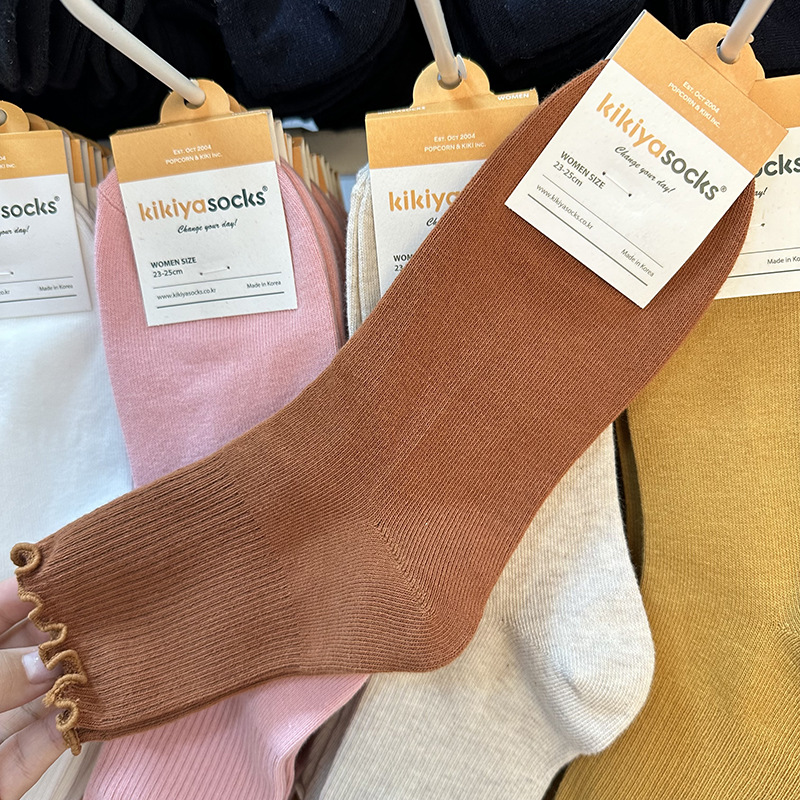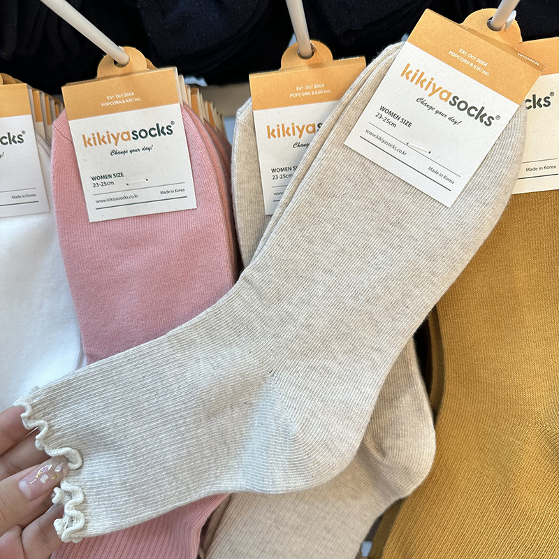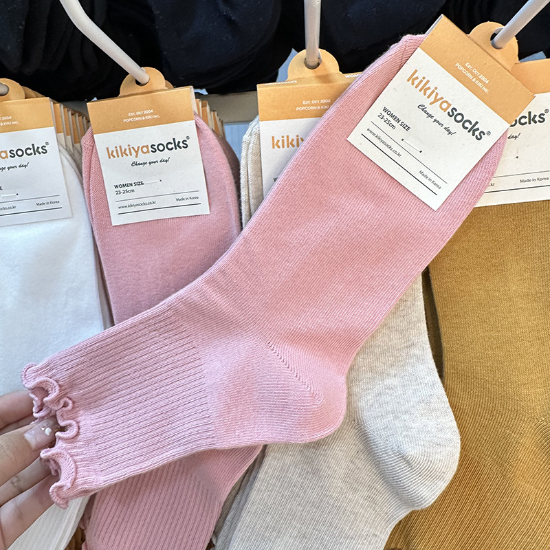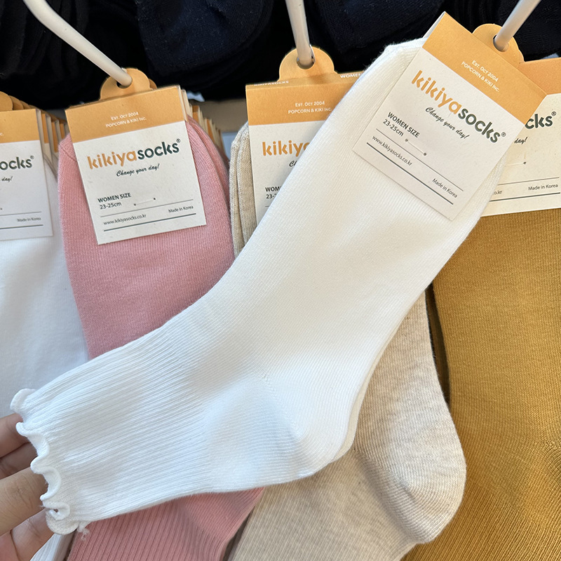 가을 겨울 단색 다용도 한국 동대문 수입 양말 여성용 kikiya 도매 구매 곰팡이 가장자리 중간 튜브면 양말스토어 가기