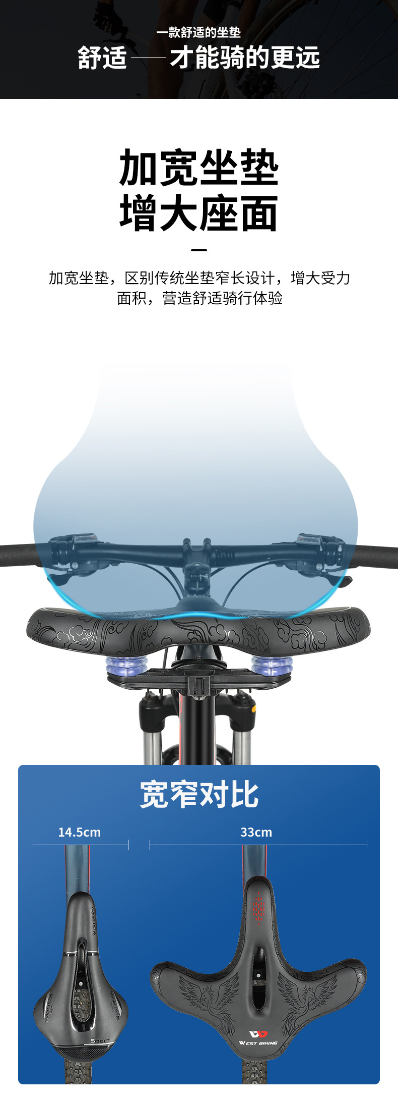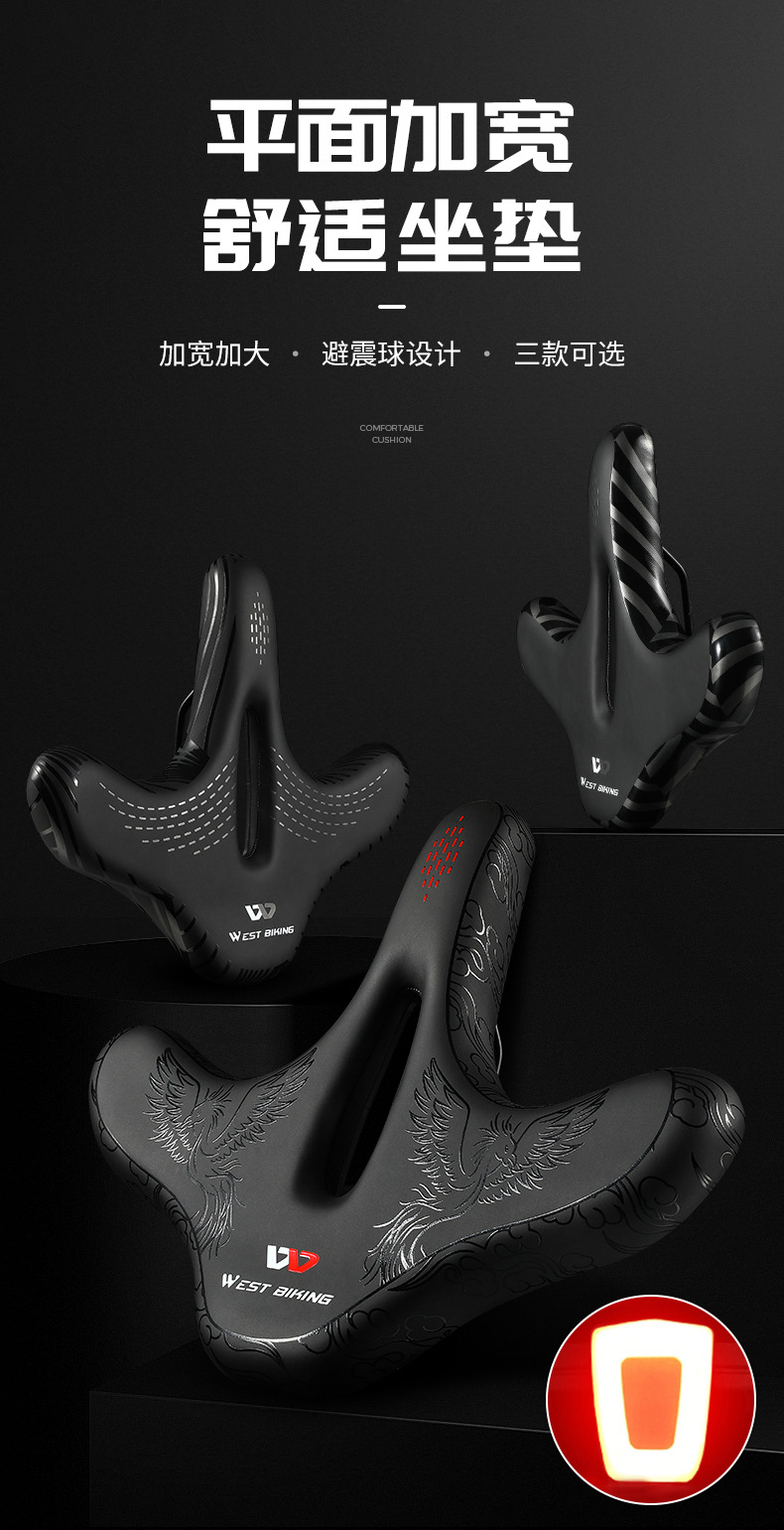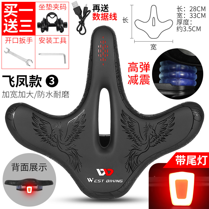 웨스트 라이더 자전거 큰 엉덩이 쿠션 야간 라이딩 경고 테일 라이트 쿠션 대형 얼굴 중공 안장 라이딩 장비스토어 가기