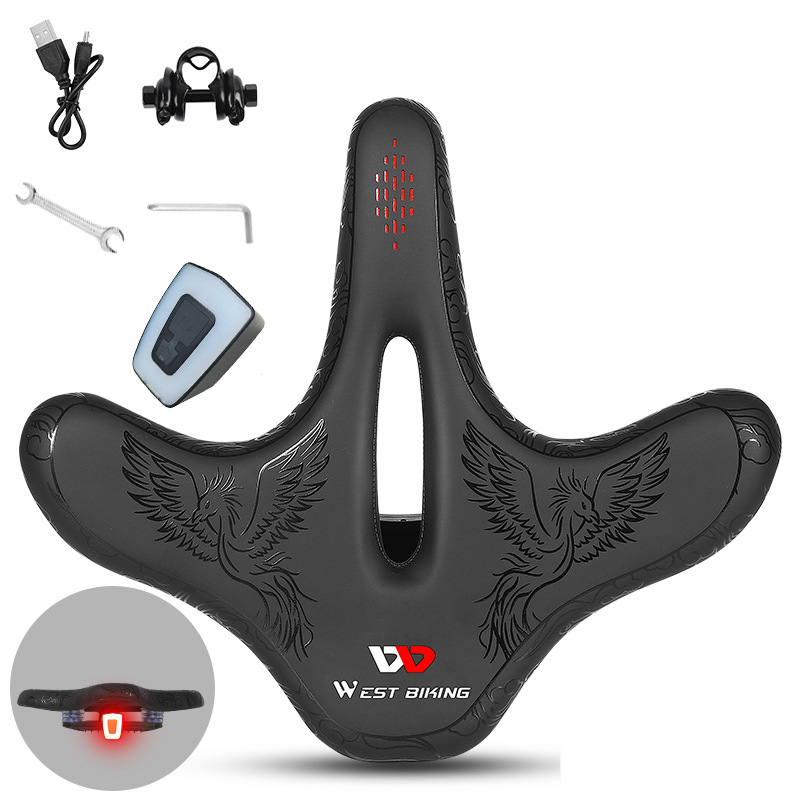 웨스트 라이더 자전거 큰 엉덩이 쿠션 야간 라이딩 경고 테일 라이트 쿠션 대형 얼굴 중공 안장 라이딩 장비
