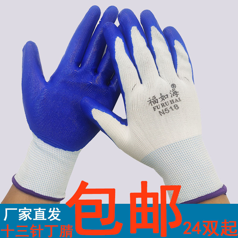 福如海蓝色丁晴手套 十三针尼龙手套挂胶手套 十三针尼龙涂胶手套 尼龙挂丁晴胶手套 蓝胶手套 薄手套 尼龙浸胶手套 丁青手套蓝色 细尼龙线手套挂胶手套 临沂劳保手套 劳保防护手套 手套厂 丁晴手套厂 丁腈手套批发手套细节 防油 耐油 防滑 劳保防护手套 质量好,价格低
