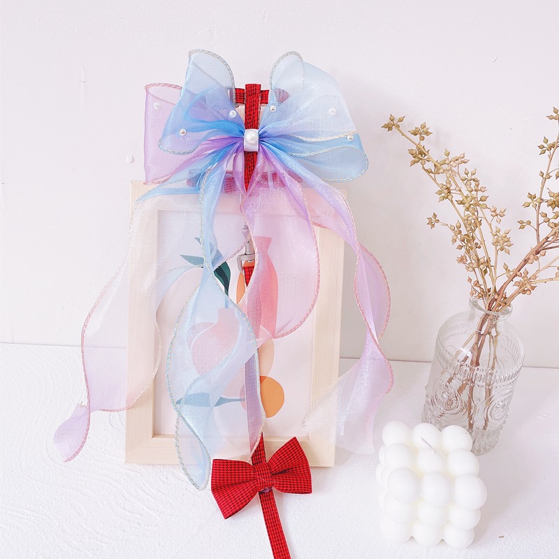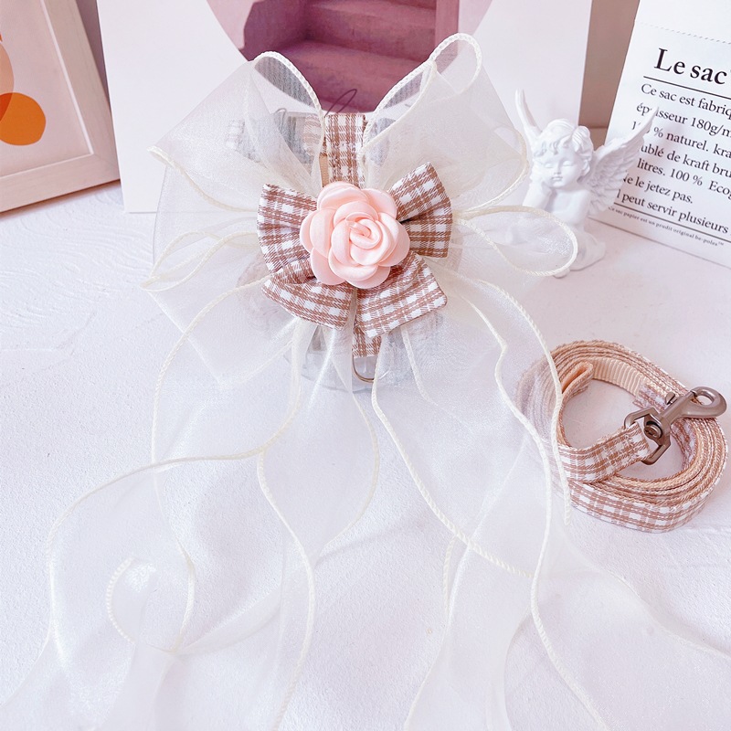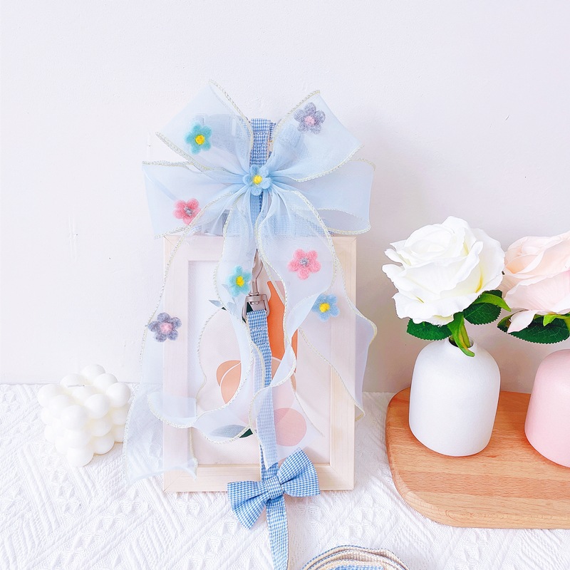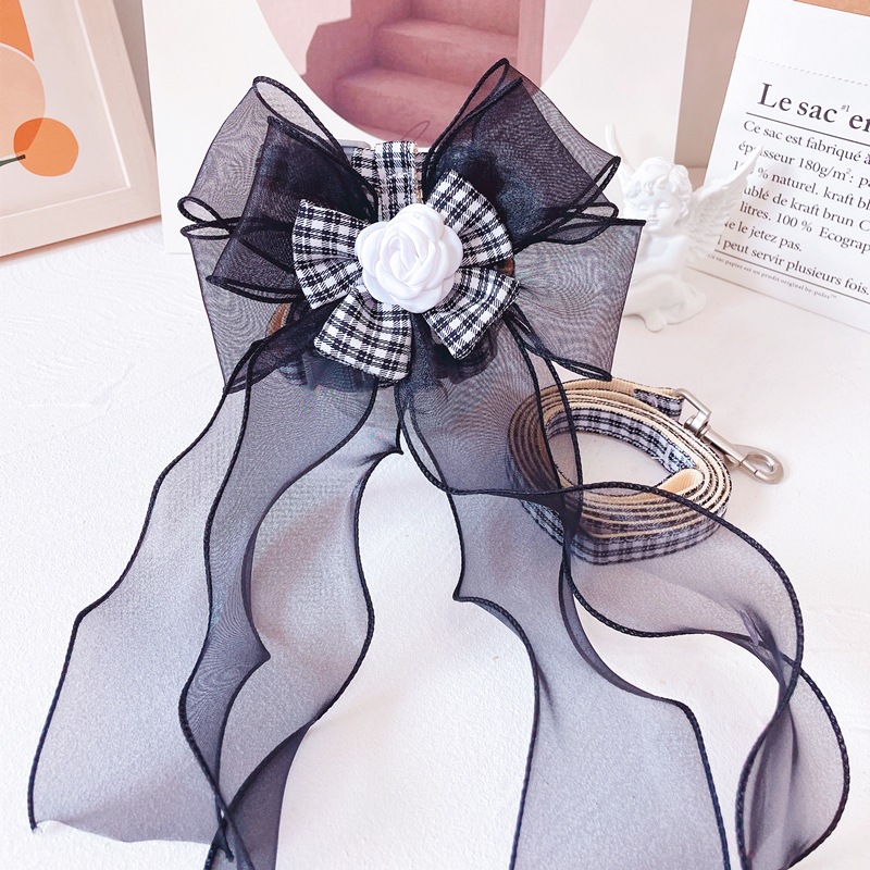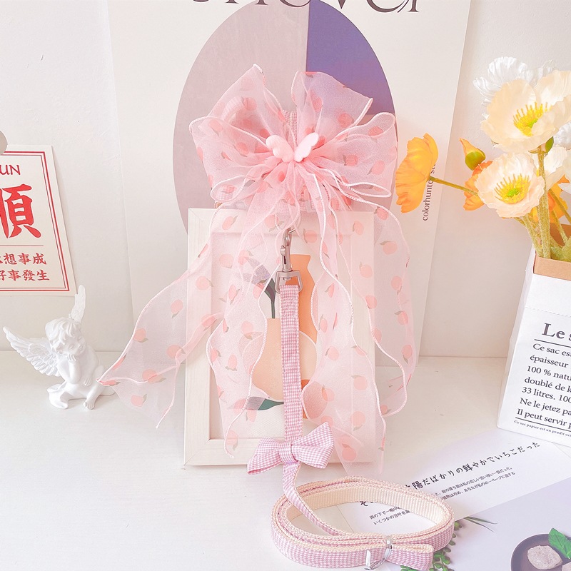 공장 직공급 애완 동물 고양이 워킹 로프 요정 메쉬 활 고양이 가슴 스트랩 안티 브레이크 고양이 개 견인 로프스토어 가기