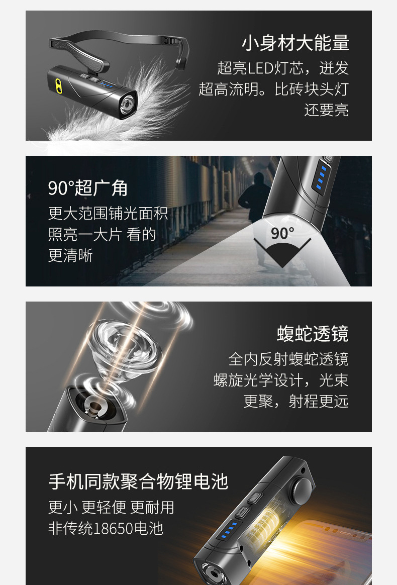 국경을 넘는 야외용 헤드램프, 센서 장착 장거리 헤드램프, 긴 배터리 수명, 강한 조명, 헤드램프, 러닝램프스토어 가기