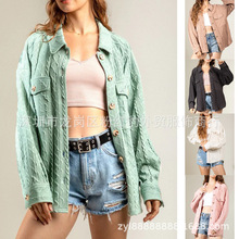 欧美爆款2023eBay亚马逊冬季新款女装时尚大口袋麻花针织衬衫外套