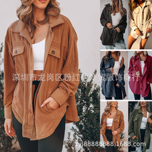 欧美爆款2023eBay亚马逊秋冬新款新品女装宽松版长袖复古外套夹克
