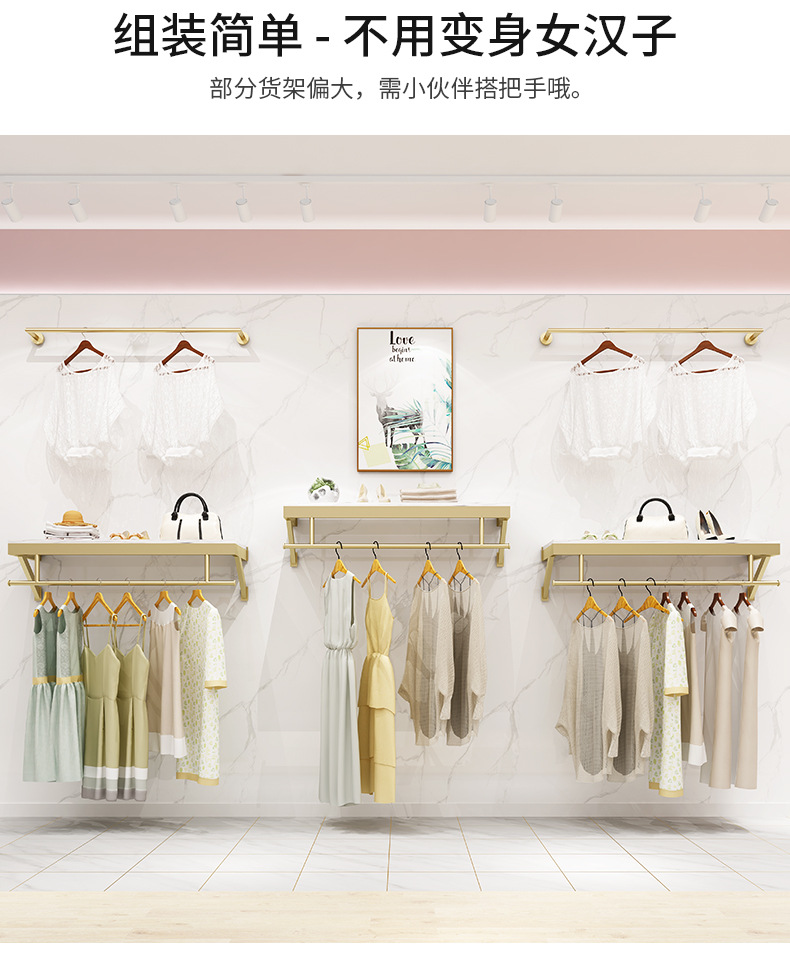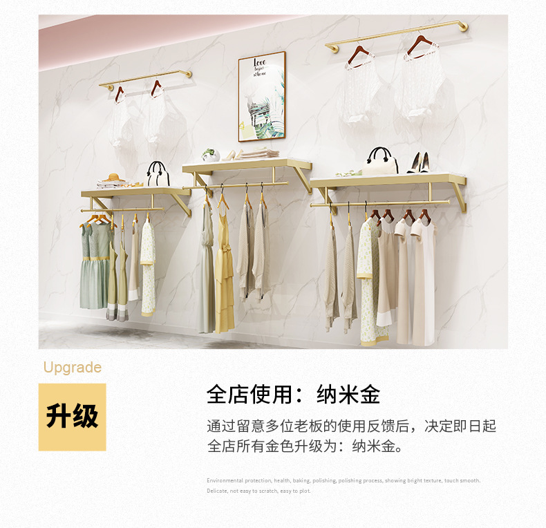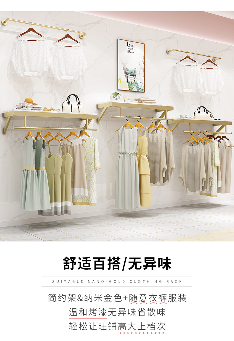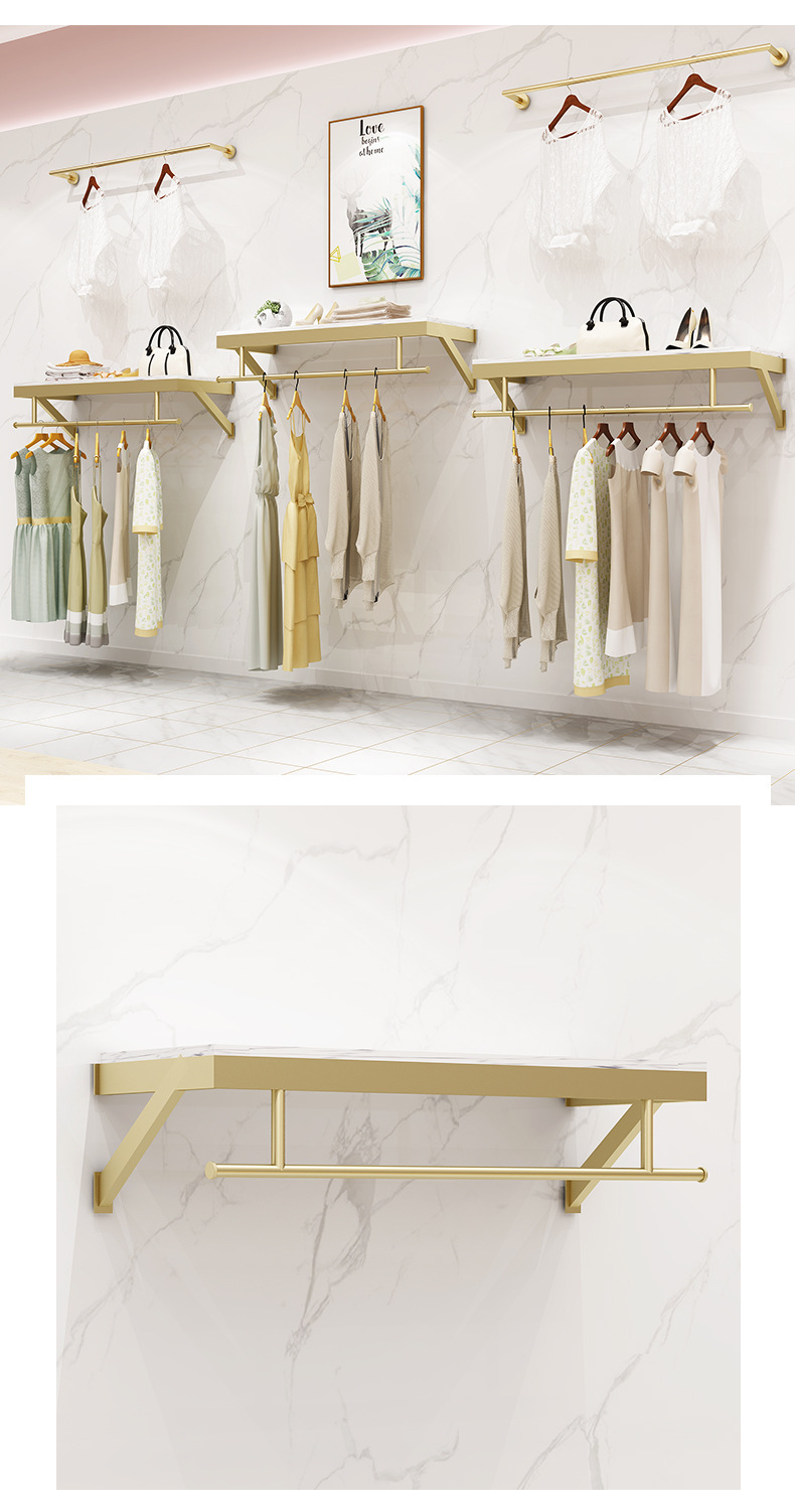 남녀 의류 매장 벽걸이 옷걸이 벽걸이 의류 진열 랙 아동 의류 매장 벽 장식 황금 선반스토어 가기