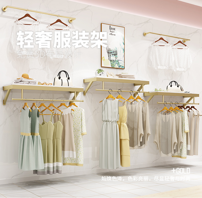 남녀 의류 매장 벽걸이 옷걸이 벽걸이 의류 진열 랙 아동 의류 매장 벽 장식 황금 선반