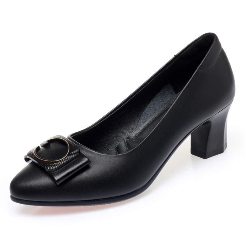 어머니 신발 여성 신발 봄과 가을 중년 유행 모든 경기 여름 싱글 레이어 신발 중년 전문 부드러운 밑창 청키 가죽 신발