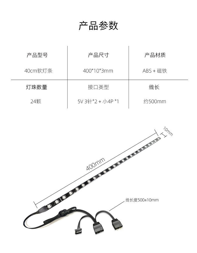 • 40cm 마그네틱 ARGB 소프트 라이트 바 (5V ARGB 인터페이스)