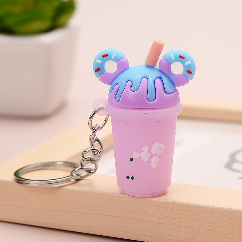 창조적 인 인터넷 유행 도넛 우유 차 컵 PVC 부드러운 접착제 귀여운 키 체인 펜던트 만화 선물 도매