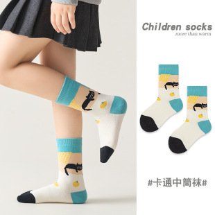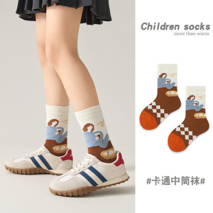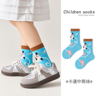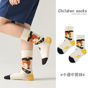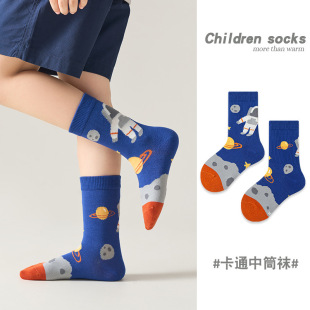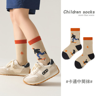 2025秋季新款儿童中筒袜卡通潮流中小童半精梳棉学生袜男童女童袜