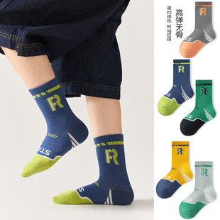 2025秋季新款儿童中筒袜卡通潮流中小童半精梳棉学生袜仿无骨袜子