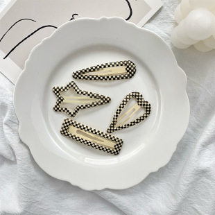 黑白棋盘格子发夹滴胶百搭刘海夹水滴方形bb夹碎发夹子日韩发饰