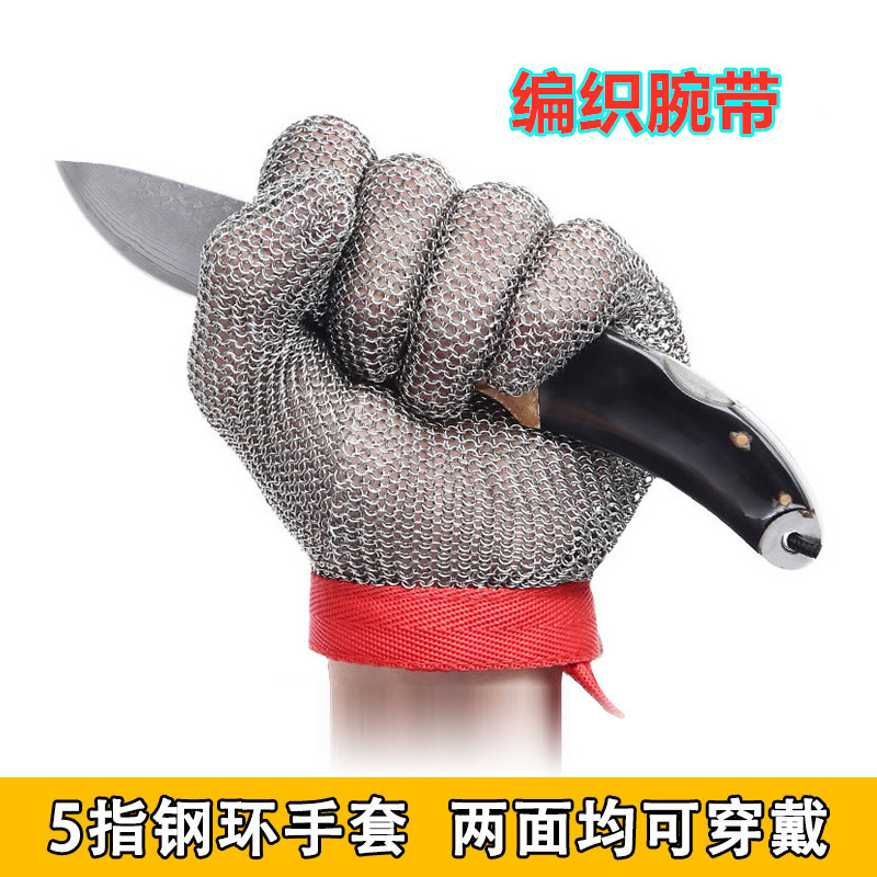 재고 금속 절단 방지 스테인레스 스틸 철 장갑 절단 방지 절단 뼈 톱질 기계 물고기 살해 강철 링 장갑 다섯 손가락 절단스토어 가기